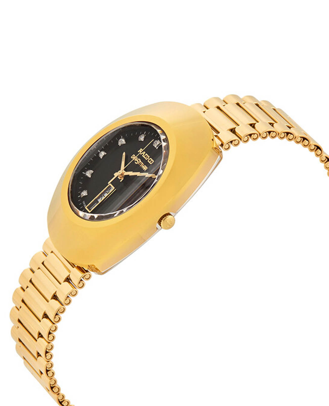 Мужские часы Rado The Original R12304313 с надёжным кварцевым механизмом. Корпус и браслет часов выполнены из нержавеющей стали с PVD-покрытиемPVDУльтратонкое покрытие наносится в технике вакуумного напыления, сочетает в себе нитрид титана особой прочности со слоем золота или оксида хрома. Несёт в себе декоративную или защитную функцию.. Стрелки с люминесцентным покрытиемЛюминесцентное покрытиеПозволяет считывать показания времени в темноте. Производители наносят на стрелки, часовые индексы, безель или поверхность циферблата светонакопительный состав, дающий холодное свечение. Super-LumiNova. Стальной браслет на раскладной застёжкеРаскладная застёжкаТакой тип застёжки используется только на браслетах из металла. Она никогда не раскрывается полностью, происходит разделение на 2 и более частей. Раскладывающая застёжка снизит вероятность потери часов к минимуму... Класс водозащиты: 30 метров, позволит защитить корпус от случайных брызг или капель дождя. Циферблат инкрустирован сапфирами. Окошки дня недели и даты находятся в положении 6 часов.