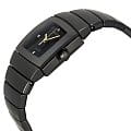 Часы Rado Sintra R13726712, произведение искусства и технологическое чудо, станут прекрасным дополнением к коллекции. Эти швейцарские часы оснащены кварцевым механизмом. Корпус  изготовлен из высокотехнологичной керамикиВысокотехнологичная керамикаИнновационный запатентованный Rado материал с гладкой или матовой поверхностью. Керамика за счёт кристаллической структуры обладает повышенной устойчивостью от возникновения царапин. Материал способен принимать температуру тела человека, обеспечивая невероятный комфорт при ношении.. Браслет изготовлен из CeramosCeramosМатериал являет собой инновационное сочетание высокотехнологичной керамики и сплава металла. Он объединяет керамическую устойчивость к царапинам и металлический роскошный блеск. . Сапфировое стеклоСапфировое стеклоПрочный и надёжный материал из кристалла сапфира синтетического происхождения, характеризующийся особой твёрдостью и устойчивостью к царапинам и повреждениям. устойчивое к появлению царапин, обладающее высокой прозрачностью. Класс водозащиты: 30 метров, позволит защитить корпус от случайных брызг или капель дождя. Белые бриллианты (0,011 карата) в положении "3", "6", "9" и "12 часов".