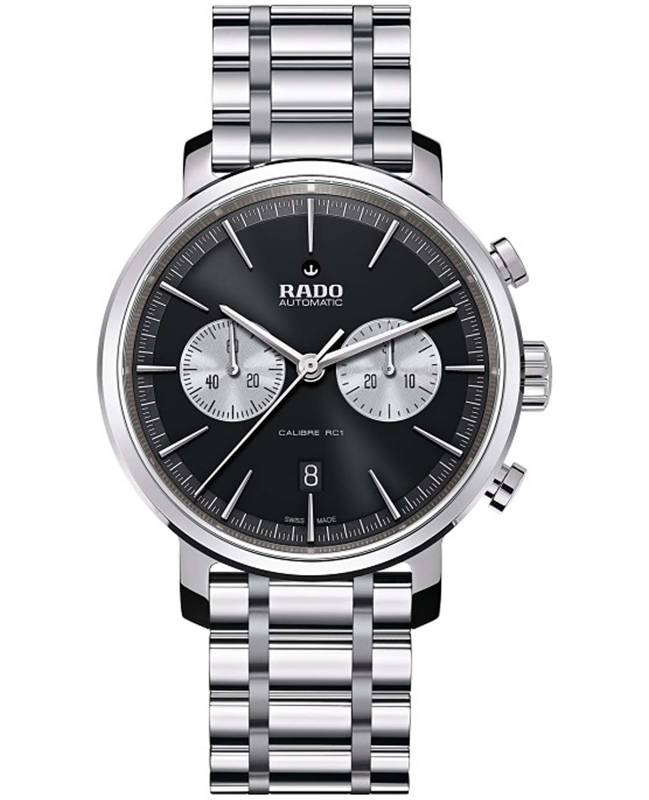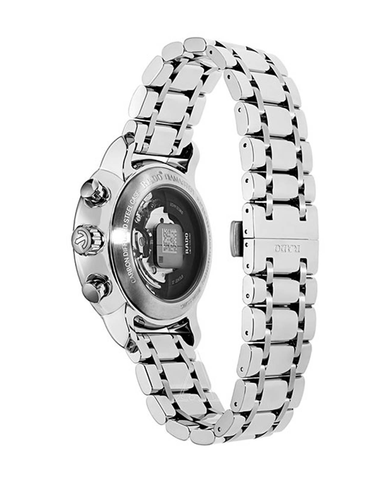 Мужские механические швейцарские часы-хронографХронографФункция позволяет измерять отрезки времени с особой точностью: часы, минуты, секунды. Верным признаком хронографа является наличие на циферблате 3 дополнительных окошек-счётчиков. с автоподзаводом Rado Diamaster R14070173. Сапфировое стеклоСапфировое стеклоПрочный и надёжный материал из кристалла сапфира синтетического происхождения, характеризующийся особой твёрдостью и устойчивостью к царапинам и повреждениям. устойчивое к мелким механическим повреждениям. Корпус часов изготовлен из углеродистой диффузной стали. Окошко даты находится в положении 6 часов. Класс водозащиты: 100 метров, позволит плавать, нырять и заниматься другими водными видами спорта. Браслет из нержавеющей стали на застёжке «бабочка» с кнопкамиЗастёжка "бабочка"Такой вид застёжки дополняется предохранителями, помогающими избежать случайного раскрытия браслета. Обладают изящным исполнением. .