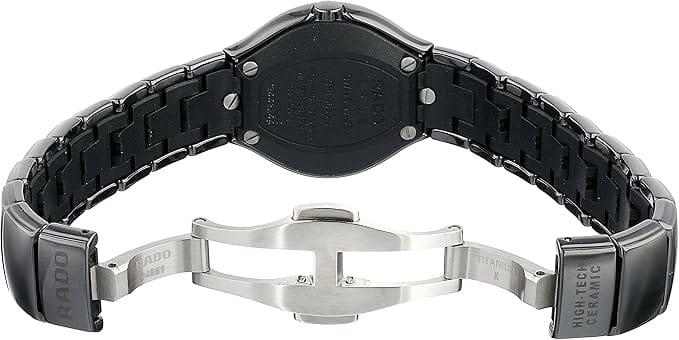 Глянцевый корпус представлен в оригинальном дизайне, его линии плавно перетекают в браслет. Наручные часы выполнены из высокотехнологичной керамикиВысокотехнологичная керамикаИнновационный запатентованный Rado материал с гладкой или матовой поверхностью. Керамика за счёт кристаллической структуры обладает повышенной устойчивостью от возникновения царапин. Материал способен принимать температуру тела человека, обеспечивая невероятный комфорт при ношении., материал не вызывает аллергии и обеспечивает невероятный комфорт при ношении. Сапфировое стеклоСапфировое стеклоПрочный и надёжный материал из кристалла сапфира синтетического происхождения, характеризующийся особой твёрдостью и устойчивостью к царапинам и повреждениям. устойчиво к образованию царапин. Стрелки с люминесцентной подсветкойЛюминесцентное покрытиеПозволяет считывать показания времени в темноте. Производители наносят на стрелки, часовые индексы, безель или поверхность циферблата светонакопительный состав, дающий холодное свечение.. Водостойкость 3 бар. Застёжка «бабочка» с кнопкамиЗастёжка "бабочка"Такой вид застёжки дополняется предохранителями, помогающими избежать случайного раскрытия браслета. Обладают изящным исполнением. .