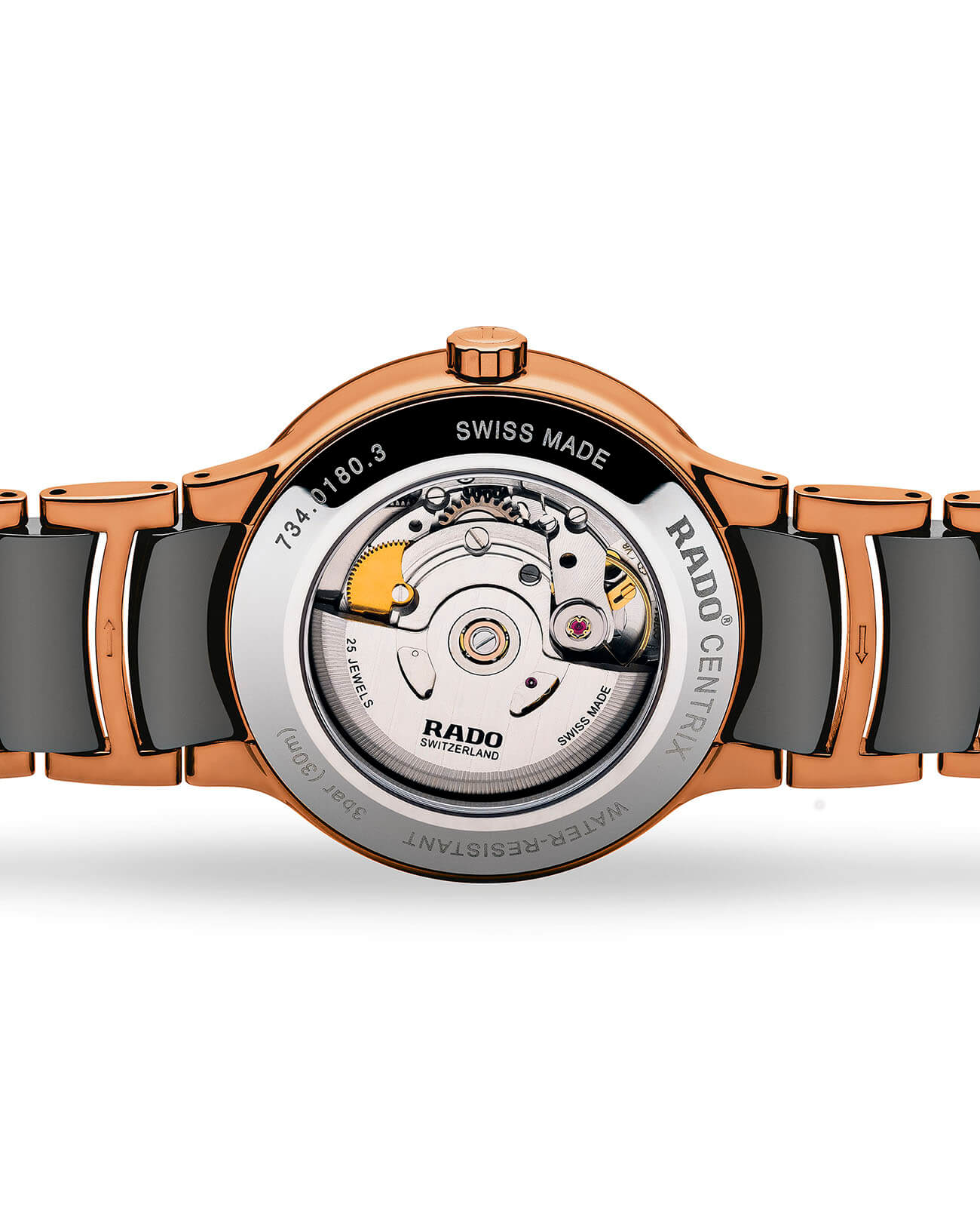 Наручные часы премиальной категории объединяют безупречность стиля и высокую точность хода, позволяя чувствовать себя на высоте в любой ситуации. Привлекательно выглядит сочетание нержавеющей стали 316L с цветным PVD-покрытиемPVDУльтратонкое покрытие наносится в технике вакуумного напыления, сочетает в себе нитрид титана особой прочности со слоем золота или оксида хрома. Несёт в себе декоративную или защитную функцию. и высокотехнологичной керамикиВысокотехнологичная керамикаИнновационный запатентованный Rado материал с гладкой или матовой поверхностью. Керамика за счёт кристаллической структуры обладает повышенной устойчивостью от возникновения царапин. Материал способен принимать температуру тела человека, обеспечивая невероятный комфорт при ношении., такое решение нашло воплощение в браслете. Модель оснащена автоматическим механизмом ETA C07.611, сохраняющим 80-часовой запас хода. Прозрачная задняя крышка. Стекло из сапфира. Индикация числа. Диаметр корпуса: 38 мм.