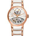 Швейцарские механические часы-скелетоны с автоподзаводом Rado Centrix Automatic Diamonds Open Heart R30248902. Сапфировое стеклоСапфировое стеклоПрочный и надёжный материал из кристалла сапфира синтетического происхождения, характеризующийся особой твёрдостью и устойчивостью к царапинам и повреждениям. устойчивое к мелким механическим повреждениям. Корпус часов изготовлен из нержавеющей стали с PVD-покрытиемPVDУльтратонкое покрытие наносится в технике вакуумного напыления, сочетает в себе нитрид титана особой прочности со слоем золота или оксида хрома. Несёт в себе декоративную или защитную функцию.. Класс водозащиты: 30 метров, позволит защитить корпус от случайных брызг или капель дождя. Браслет из стали PVD-покрытиемPVDУльтратонкое покрытие наносится в технике вакуумного напыления, сочетает в себе нитрид титана особой прочности со слоем золота или оксида хрома. Несёт в себе декоративную или защитную функцию. и высокотехнологичной керамикиВысокотехнологичная керамикаИнновационный запатентованный Rado материал с гладкой или матовой поверхностью. Керамика за счёт кристаллической структуры обладает повышенной устойчивостью от возникновения царапин. Материал способен принимать температуру тела человека, обеспечивая невероятный комфорт при ношении. на раскладной застёжкеРаскладная застёжкаТакой тип застёжки используется только на браслетах из металла. Она никогда не раскрывается полностью, происходит разделение на 2 и более частей. Раскладывающая застёжка снизит вероятность потери часов к минимуму..