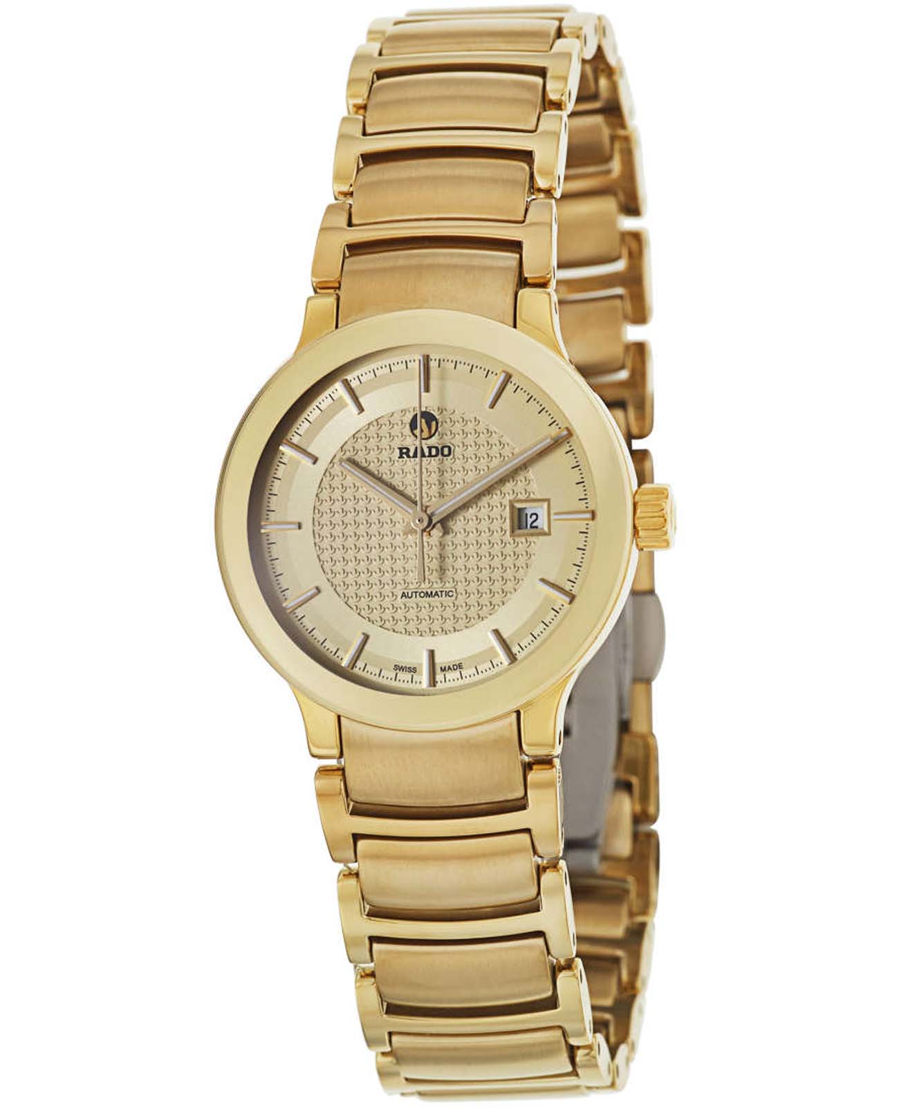 Швейцарские женские механические часы с автоподзаводом Rado Centrix R30280253. Сапфировое стеклоСапфировое стеклоПрочный и надёжный материал из кристалла сапфира синтетического происхождения, характеризующийся особой твёрдостью и устойчивостью к царапинам и повреждениям. устойчивое к появлению царапин, обладающее высокой прозрачностью. Корпус часов изготовлен из нержавеющей стали с PVD-покрытиемPVDУльтратонкое покрытие наносится в технике вакуумного напыления, сочетает в себе нитрид титана особой прочности со слоем золота или оксида хрома. Несёт в себе декоративную или защитную функцию.. Окошко даты находится в положении 3 часа. Стрелки с люминесцентным покрытиемЛюминесцентное покрытиеПозволяет считывать показания времени в темноте. Производители наносят на стрелки, часовые индексы, безель или поверхность циферблата светонакопительный состав, дающий холодное свечение.. Класс водозащиты: 30 метров, позволит защитить корпус от случайных брызг или капель дождя. Браслет из нержавеющей стали с PVD-покрытиемPVDУльтратонкое покрытие наносится в технике вакуумного напыления, сочетает в себе нитрид титана особой прочности со слоем золота или оксида хрома. Несёт в себе декоративную или защитную функцию. на раскладной застёжкеРаскладная застёжкаТакой тип застёжки используется только на браслетах из металла. Она никогда не раскрывается полностью, происходит разделение на 2 и более частей. Раскладывающая застёжка снизит вероятность потери часов к минимуму..