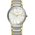 Швейцарские женские часы с надёжным кварцевым механизмом Rado Centrix Diamonds R30932923. Корпус часов изготовлен из нержавеющей стали. Браслет из стали с частичным PVD-покрытиемPVDУльтратонкое покрытие наносится в технике вакуумного напыления, сочетает в себе нитрид титана особой прочности со слоем золота или оксида хрома. Несёт в себе декоративную или защитную функцию. на раскладной застёжкеРаскладная застёжкаТакой тип застёжки используется только на браслетах из металла. Она никогда не раскрывается полностью, происходит разделение на 2 и более частей. Раскладывающая застёжка снизит вероятность потери часов к минимуму.. Сапфировое стеклоСапфировое стеклоПрочный и надёжный материал из кристалла сапфира синтетического происхождения, характеризующийся особой твёрдостью и устойчивостью к царапинам и повреждениям. устойчивое к мелким механическим повреждениям. Класс водозащиты: 30 метров, позволит защитить корпус от случайных брызг или капель дождя. Окошко даты находится в положении 3 часа. Стрелки и метки с люминесцентным покрытиемЛюминесцентное покрытиеПозволяет считывать показания времени в темноте. Производители наносят на стрелки, часовые индексы, безель или поверхность циферблата светонакопительный состав, дающий холодное свечение..