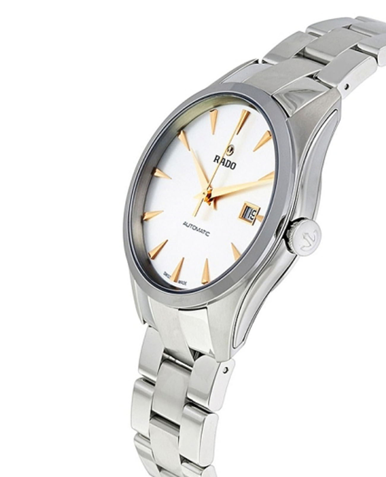 Мужские механические швейцарские часы с автоподзаводом Rado Hyperchrome Automatic R32115113. Сапфировое стеклоСапфировое стеклоПрочный и надёжный материал из кристалла сапфира синтетического происхождения, характеризующийся особой твёрдостью и устойчивостью к царапинам и повреждениям. устойчивое к мелким механическим повреждениям. Корпус часов изготовлен из нержавеющей стали. Окошко даты находится в положении 3 часа. Класс водозащиты: 50 метров, позволит защитить корпус от случайных брызг или капель дождя. Стальной браслет на раскладной застёжкеРаскладная застёжкаТакой тип застёжки используется только на браслетах из металла. Она никогда не раскрывается полностью, происходит разделение на 2 и более частей. Раскладывающая застёжка снизит вероятность потери часов к минимуму..