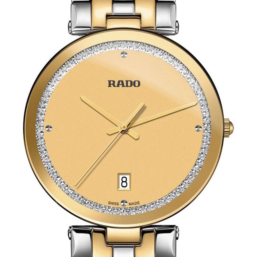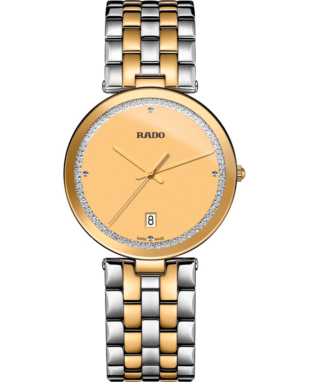 Мужские швейцарские кварцевые часы Rado Florence R48868263. Сапфировое стеклоСапфировое стеклоПрочный и надёжный материал из кристалла сапфира синтетического происхождения, характеризующийся особой твёрдостью и устойчивостью к царапинам и повреждениям. устойчивое к мелким механическим повреждениям. Стальной браслет на застёжке-бабочке. Корпус и браслет часов изготовлены из нержавеющей стали с частичным PVD-покрытиемPVDУльтратонкое покрытие наносится в технике вакуумного напыления, сочетает в себе нитрид титана особой прочности со слоем золота или оксида хрома. Несёт в себе декоративную или защитную функцию.. Окошко даты находится в положении 6 часов. Класс водозащиты: 30 метров, позволит защитить корпус от случайных брызг или капель дождя. Циферблат инкрустирован бриллиантами.