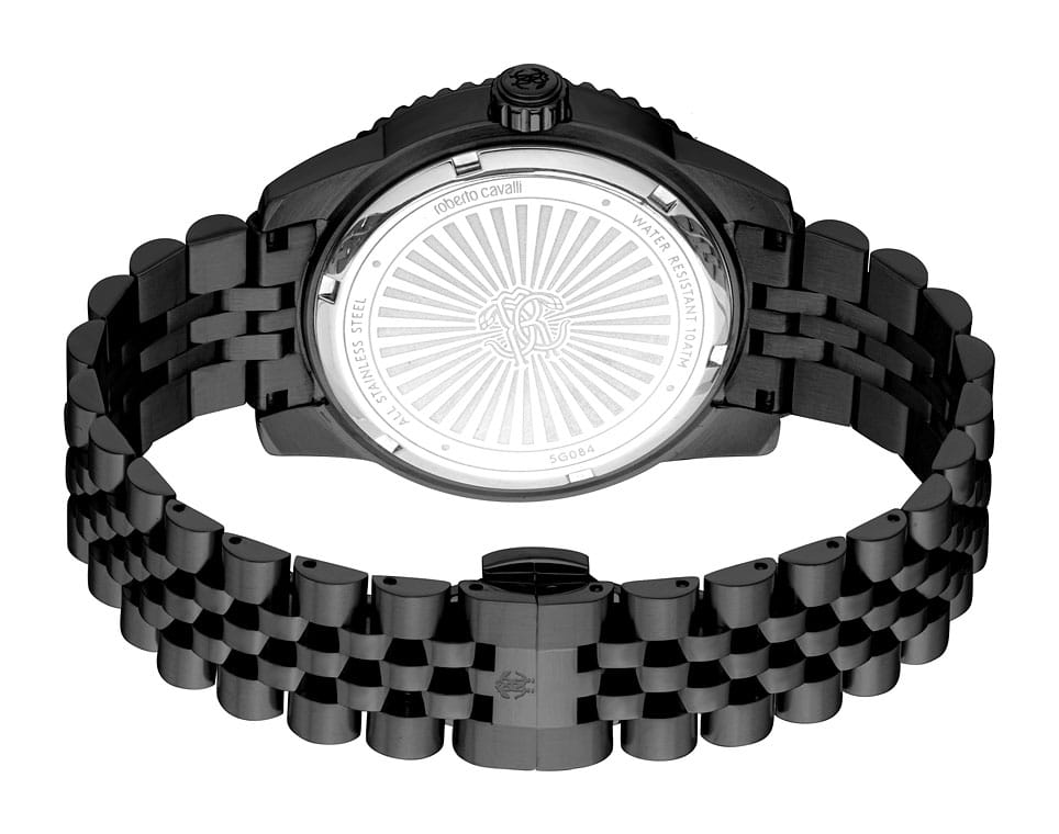 Погрузитесь в мир роскоши и безупречного стиля с мужскими наручными часами ROBERTO CAVALLI RC5G084M1075. Эти часы – воплощение смелого дизайна и итальянской элегантности, созданные для мужчины, который ценит внимание к деталям и не боится заявить о себе. Круглый корпус диаметром 42 мм выполнен из нержавеющей стали с PVD-покрытиемPVDУльтратонкое покрытие наносится в технике вакуумного напыления, сочетает в себе нитрид титана особой прочности со слоем золота или оксида хрома. Несёт в себе декоративную или защитную функцию., толщина корпуса составляет 11 мм, что придает модели выразительный внешний вид и надежную защиту от внешних воздействий. Циферблат, искусно оформленный фирменными элементами Roberto Cavalli, притягивает взгляд и подчеркивает ваш безупречный вкус. Часы оснащены кварцевым механизмом, также обладают функцией отображения даты, что делает их удобными для ежедневного использования. Минеральное стеклоМинеральное стеклоМинеральное стекло представляет собой искусственно выращенный минерал кварца. Такое стекло отличается особой устойчивостью к повреждениям и царапинам. Уступает по некоторым качествам сапфировому стеклу. защищает часы от царапин. Водозащита 100 метров, позволит плавать, нырять и заниматься другими водными видами спорта. Стальной браслет на застёжке-бабочке с кнопкамиЗастёжка "бабочка"Такой вид застёжки дополняется предохранителями, помогающими избежать случайного раскрытия браслета. Обладают изящным исполнением. обеспечивает комфортное ношение. Поворотный безельБезельВнешний ободок, закрепляющий стекло. В спортивных часах так называется поворотное кольцо с делениями на циферблате, выполняет роль таймера – замеряет отрезки времени на шкале. Неподвижный безель – элемент декора. Однонаправленно вращающийся безель на дайверских часах позволяет фиксировать моменты погружения и выныривания на поверхность. с PVD-покрытиемPVDУльтратонкое покрытие наносится в технике вакуумного напыления, сочетает в себе нитрид титана особой прочности со слоем золота или оксида хрома. Несёт в себе декоративную или защитную функцию.. Стрелки и метки с люминесцентным покрытиемЛюминесцентное покрытиеПозволяет считывать показания времени в темноте. Производители наносят на стрелки, часовые индексы, безель или поверхность циферблата светонакопительный состав, дающий холодное свечение. обеспечивают отличную читаемость в любое время суток.