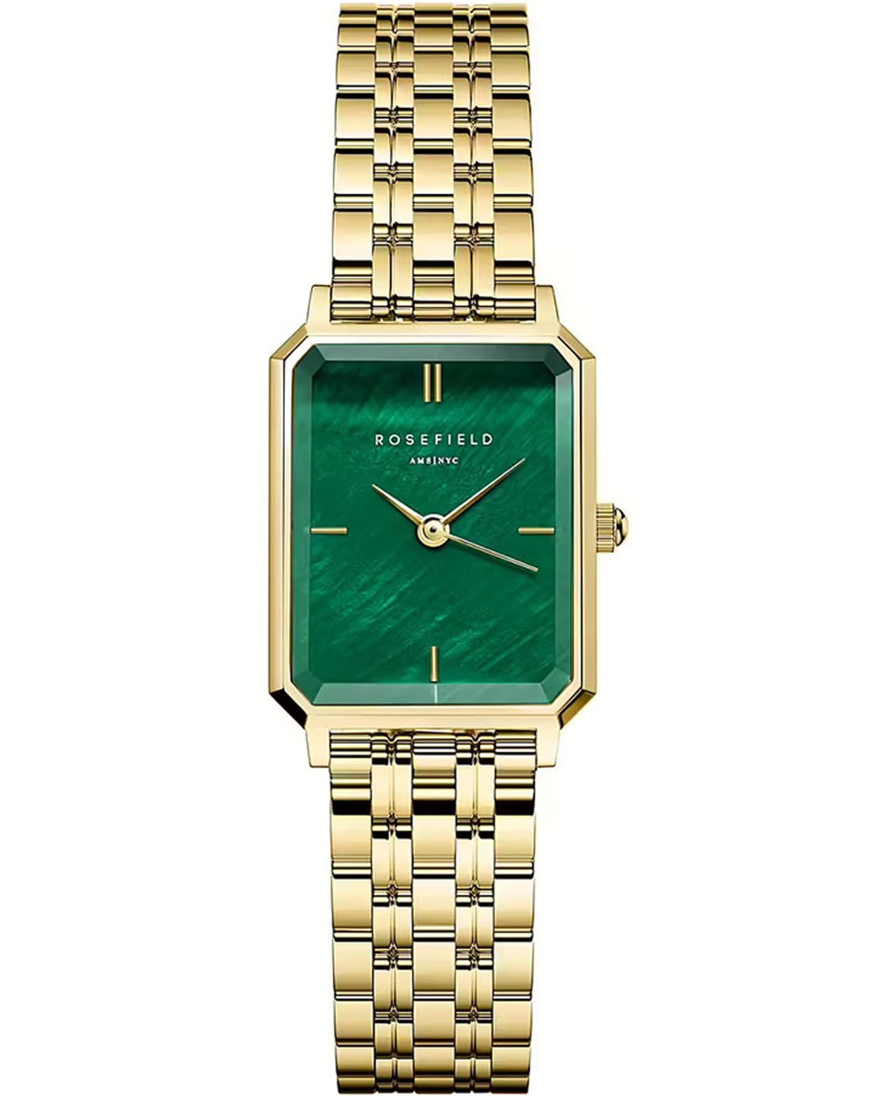 Женские кварцевые часы Rosefield The Octagon OEGSG-O79. Корпус часов изготовлен из нержавеющей стали с PVD-покрытиемPVDУльтратонкое покрытие наносится в технике вакуумного напыления, сочетает в себе нитрид титана особой прочности со слоем золота или оксида хрома. Несёт в себе декоративную или защитную функцию.. Стальной браслет на ювелирной застёжке. Минеральное стеклоМинеральное стеклоМинеральное стекло представляет собой искусственно выращенный минерал кварца. Такое стекло отличается особой устойчивостью к повреждениям и царапинам. Уступает по некоторым качествам сапфировому стеклу. устойчивое к мелким механическим повреждениям. Класс водозащиты: 30 метров, позволит защитить корпус от случайных брызг или капель дождя.