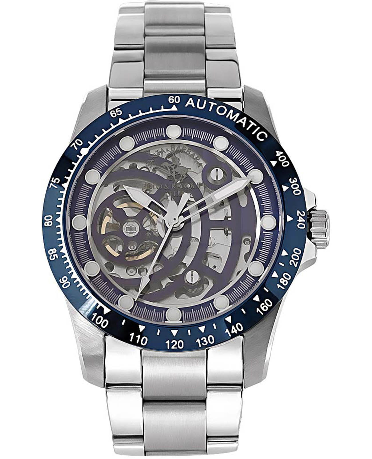 Мужские механические часы с автоподзаводом Santa Barbara Polo & Racquet Club — это эффектный аксессуар с оригинальным дизайном. Корпус диаметром 42 мм и высотой 49,5 мм выполнен из стали. БезельБезельВнешний ободок, закрепляющий стекло. В спортивных часах так называется поворотное кольцо с делениями на циферблате, выполняет роль таймера – замеряет отрезки времени на шкале. Неподвижный безель – элемент декора. Однонаправленно вращающийся безель на дайверских часах позволяет фиксировать моменты погружения и выныривания на поверхность. из стали с IP-покрытиемIP-покрытиеМетод ионного напыления. Демонстрирует повышенную устойчивость к истиранию, окислению и химическим веществам. Под воздействием высокого давления и температуры около 1500°C молекулы металла надёжно соединяются с частицами корпуса часов.. Циферблат синего цвета частично скелетонизирован, что позволяет наблюдать за работой механизма. Двухуровневый циферблат украшен накладными метками в виде точек и фирменным логотипом. Стрелки и метки с люминесцентным покрытиемЛюминесцентное покрытиеПозволяет считывать показания времени в темноте. Производители наносят на стрелки, часовые индексы, безель или поверхность циферблата светонакопительный состав, дающий холодное свечение., обеспечивающим хорошую читаемость в темноте. Циферблат защищён минеральным стекломМинеральное стеклоМинеральное стекло представляет собой искусственно выращенный минерал кварца. Такое стекло отличается особой устойчивостью к повреждениям и царапинам. Уступает по некоторым качествам сапфировому стеклу.. Прозрачная задняя крышка открывает вид на механизм. Часы оснащены стальным браслетом с раскладной застёжкойРаскладная застёжкаТакой тип застёжки используется только на браслетах из металла. Она никогда не раскрывается полностью, происходит разделение на 2 и более частей. Раскладывающая застёжка снизит вероятность потери часов к минимуму.. Водонепроницаемость 50 м позволяет использовать часы в повседневных условиях. Идеальный выбор для тех, кто ценит технологичность, стиль и выразительность.