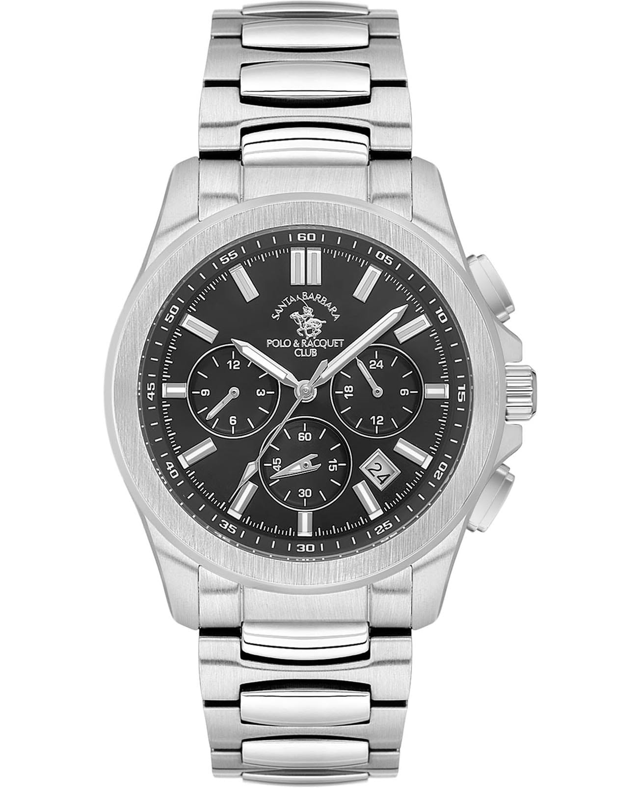 Santa Barbara Polo & Racquet Club Legend SB.1.10582-2 — стильные мужские часы, сочетающие спортивную динамику и функциональность. Крупный корпус выполнен из нержавеющей стали и гармонично дополнен браслетом на застёжке-бабочкеЗастёжка "бабочка"Такой вид застёжки дополняется предохранителями, помогающими избежать случайного раскрытия браслета. Обладают изящным исполнением. . Циферблат с акцентными метками и стрелками с люминесцентным покрытиемЛюминесцентное покрытиеПозволяет считывать показания времени в темноте. Производители наносят на стрелки, часовые индексы, безель или поверхность циферблата светонакопительный состав, дающий холодное свечение. оформлен в многослойной структуре и оснащён вспомогательными индикаторами, включая 24-часовой формат, второй часовой поясВторой часовой поясФункция, позволяющая отображать время двух часовых поясов одновременно.. В нижней части расположено окошко даты, что делает модель ещё более практичной. Минеральное стеклоМинеральное стеклоМинеральное стекло представляет собой искусственно выращенный минерал кварца. Такое стекло отличается особой устойчивостью к повреждениям и царапинам. Уступает по некоторым качествам сапфировому стеклу. защищает циферблат от царапин, а кварцевый механизм обеспечивает высокую точность. Благодаря своей универсальной эстетике эти часы уместны и в деловой среде, и в повседневном образе.