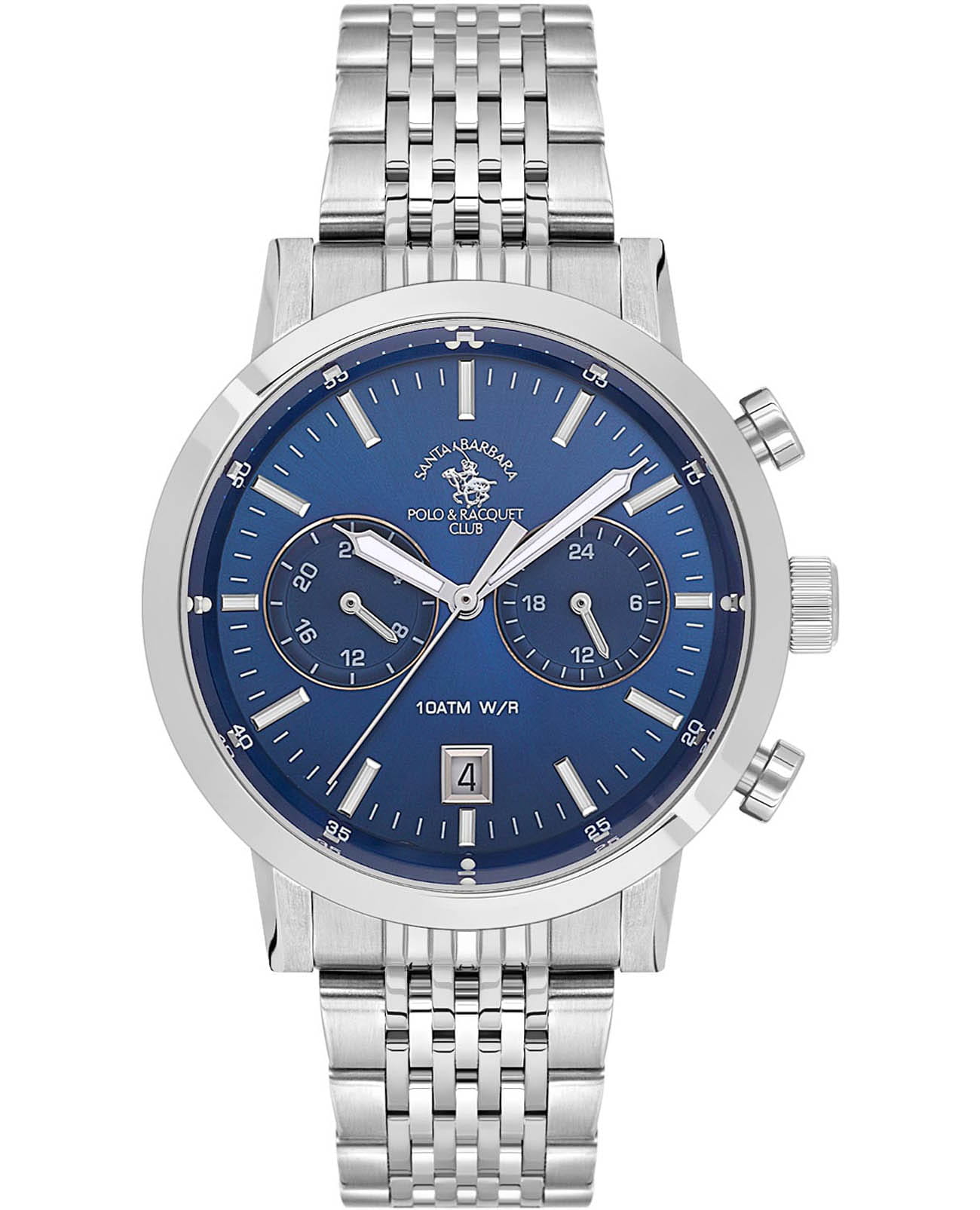 Santa Barbara Polo & Racquet Club Legend SB.1.10585-3 — стильные мужские часы, сочетающие спортивную динамику и функциональность. Крупный корпус выполнен из нержавеющей стали и гармонично дополнен браслетом на застёжке-бабочке с кнопкамиЗастёжка "бабочка"Такой вид застёжки дополняется предохранителями, помогающими избежать случайного раскрытия браслета. Обладают изящным исполнением. . Циферблат с акцентными стрелками с люминесцентным покрытиемЛюминесцентное покрытиеПозволяет считывать показания времени в темноте. Производители наносят на стрелки, часовые индексы, безель или поверхность циферблата светонакопительный состав, дающий холодное свечение. оформлен в многослойной структуре и оснащён вспомогательными индикаторами, включая 24-часовой формат времени, а также второй часовой поясВторой часовой поясФункция, позволяющая отображать время двух часовых поясов одновременно.. В нижней части расположено окошко даты, что делает модель ещё более практичной. Минеральное стеклоМинеральное стеклоМинеральное стекло представляет собой искусственно выращенный минерал кварца. Такое стекло отличается особой устойчивостью к повреждениям и царапинам. Уступает по некоторым качествам сапфировому стеклу. защищает циферблат от царапин, а кварцевый механизм обеспечивает высокую точность. Благодаря своей универсальной эстетике эти часы уместны и в деловой среде, и в повседневном образе.