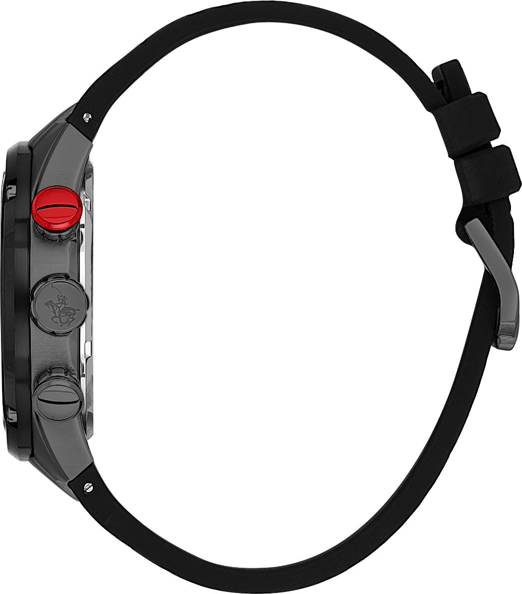 Мужские кварцевые часы-хронографХронографФункция позволяет измерять отрезки времени с особой точностью: часы, минуты, секунды. Верным признаком хронографа является наличие на циферблате 3 дополнительных окошек-счётчиков. с секундомеромСекундомерСекундоме́р — прибор, способный измерять интервалы времени с точностью до долей секунды. Santa Barbara Polo & Racquet Club SB.3.10001-4 — воплощение элегантности и технического совершенства. Корпус из нержавеющей стали с IP-покрытиемIP-покрытиеМетод ионного напыления. Демонстрирует повышенную устойчивость к истиранию, окислению и химическим веществам. Под воздействием высокого давления и температуры около 1500°C молекулы металла надёжно соединяются с частицами корпуса часов. серого цвета, диаметром 45 мм, что делает их устойчивыми к внешним воздействиям и придает благородный вид. Стрелки и метки с люминесцентным покрытиемЛюминесцентное покрытиеПозволяет считывать показания времени в темноте. Производители наносят на стрелки, часовые индексы, безель или поверхность циферблата светонакопительный состав, дающий холодное свечение., обеспечивающим хорошую читаемость в темноте. Неподвижный безельБезельВнешний ободок, закрепляющий стекло. В спортивных часах так называется поворотное кольцо с делениями на циферблате, выполняет роль таймера – замеряет отрезки времени на шкале. Неподвижный безель – элемент декора. Однонаправленно вращающийся безель на дайверских часах позволяет фиксировать моменты погружения и выныривания на поверхность. с IP-покрытиемIP-покрытиеМетод ионного напыления. Демонстрирует повышенную устойчивость к истиранию, окислению и химическим веществам. Под воздействием высокого давления и температуры около 1500°C молекулы металла надёжно соединяются с частицами корпуса часов. черного цвета. Циферблат защищён минеральным стекломМинеральное стеклоМинеральное стекло представляет собой искусственно выращенный минерал кварца. Такое стекло отличается особой устойчивостью к повреждениям и царапинам. Уступает по некоторым качествам сапфировому стеклу. устойчивое к царапинам и механическим повреждениям. Окошко даты находится в положении 4 часа, тахиметрТахиметрРазмеченная шкала, располагается на ободке или безеле часов. Тахиметр позволяет рассчитать скорость на определённом участке пути, расстояние измеряется в километрах или милях. по внешнему краю. Кожаный ремешок на стандартной застёжке обеспечивает комфортное и безопасное ношение. Водонепроницаемость 100 метров позволит плавать, нырять и заниматься другими водными видами спорта. Идеальный выбор для тех, кто ценит элегантный дизайн и качество.