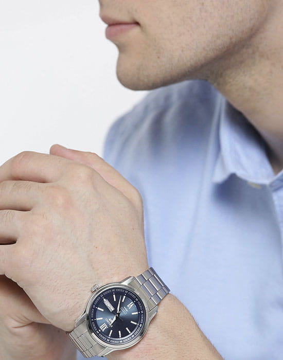 Брендовый аксессуар подойдёт как для ценителей делового стиля, так и для приверженцев активного образа жизни, предпочитающих спортивную одежду или джинсы. Стрелки и метки с люминесцентным покрытиемЛюминесцентное покрытиеПозволяет считывать показания времени в темноте. Производители наносят на стрелки, часовые индексы, безель или поверхность циферблата светонакопительный состав, дающий холодное свечение.. Стальной браслет на раскладной застёжкеРаскладная застёжкаТакой тип застёжки используется только на браслетах из металла. Она никогда не раскрывается полностью, происходит разделение на 2 и более частей. Раскладывающая застёжка снизит вероятность потери часов к минимуму.. Универсальность модели позволяет сочетать её с любым стилем. В этих наручных часах идеально всё - цветовая гамма, внимание к деталям, оригинальное исполнение. За точность хода в ответе механизмы собственного производства, измеряющие время с минимальной погрешностью. Изготовление и сборка часов происходят исключительно в Японии.