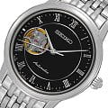 Наручные японские женские часы. Механизм с автоподзаводом, калибр Seiko 4R38. Круглый корпус и браслет часов выполнены из стали. Черный фон циферблата и стальные элементы дизайна. Водонепроницаемость 10 ATM. Сапфировое стекло, устойчивое к появлению царапин. Современный и роскошный аксессуар.