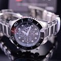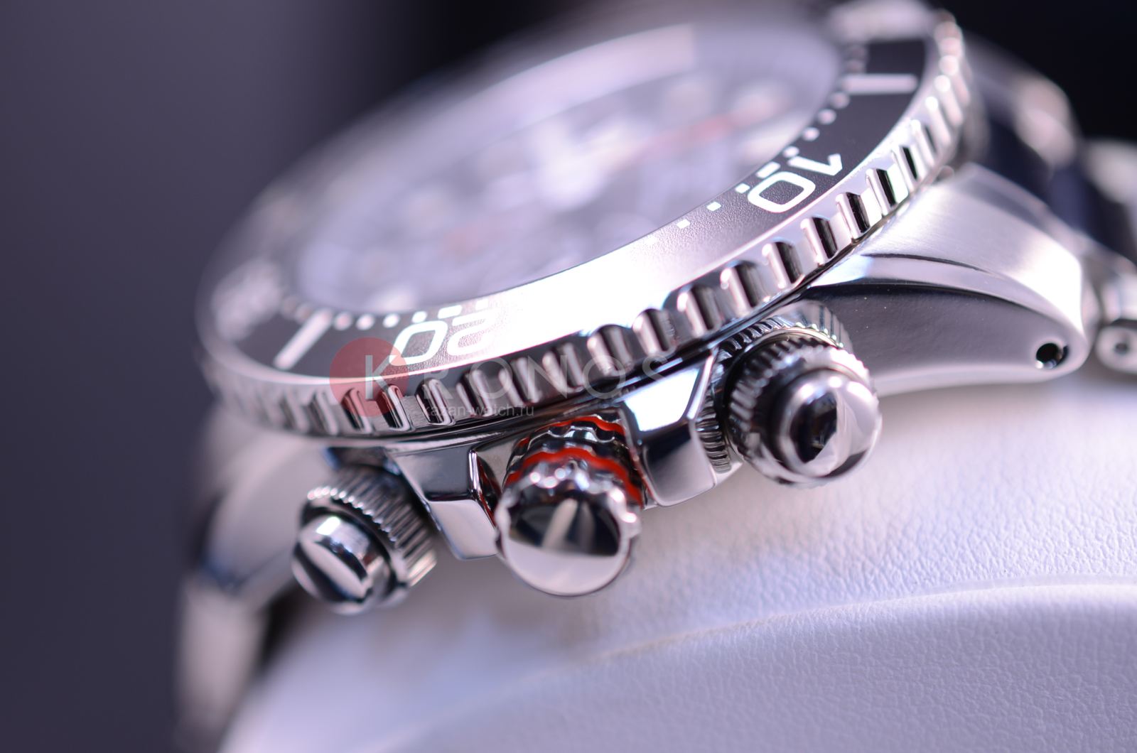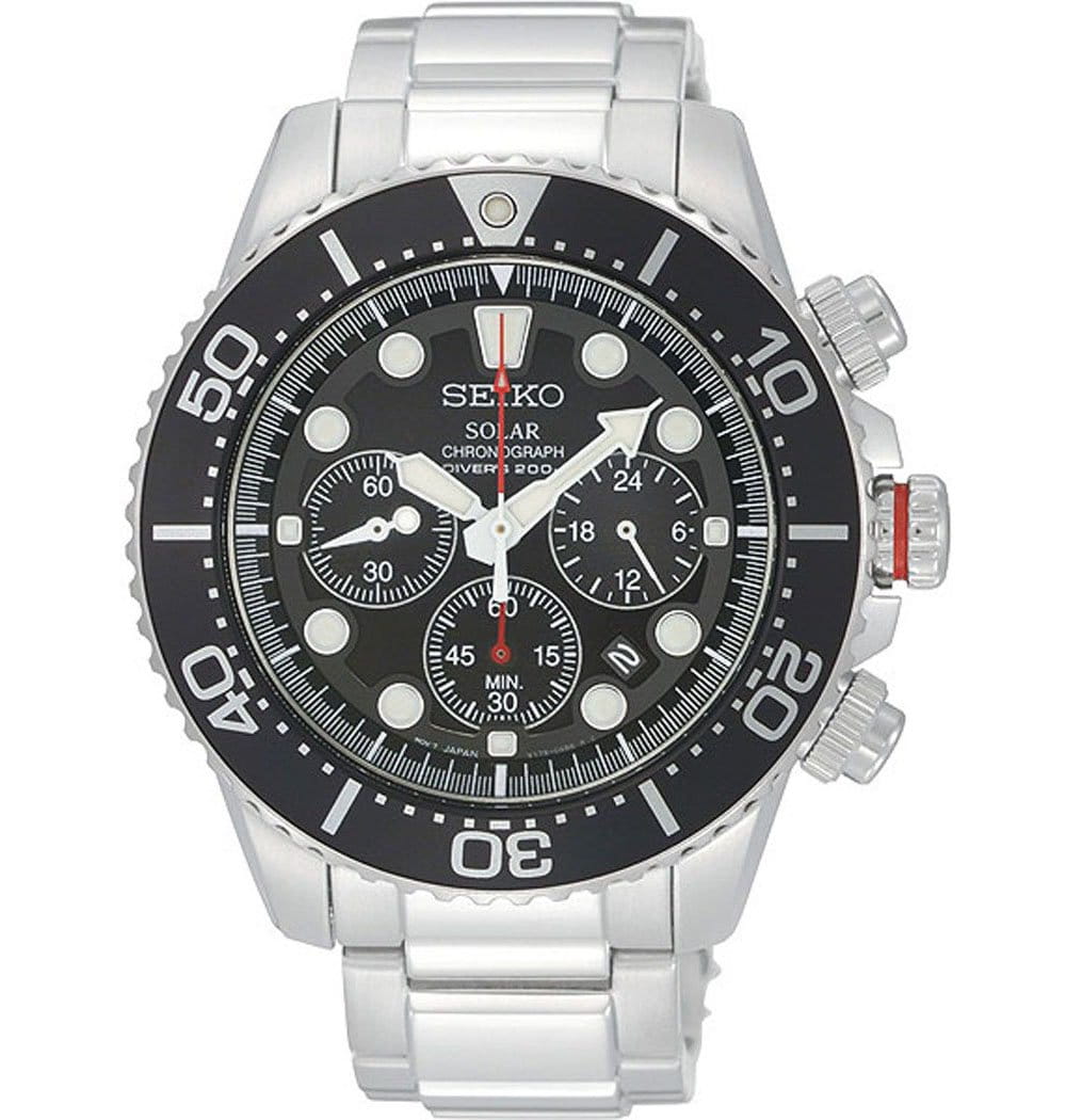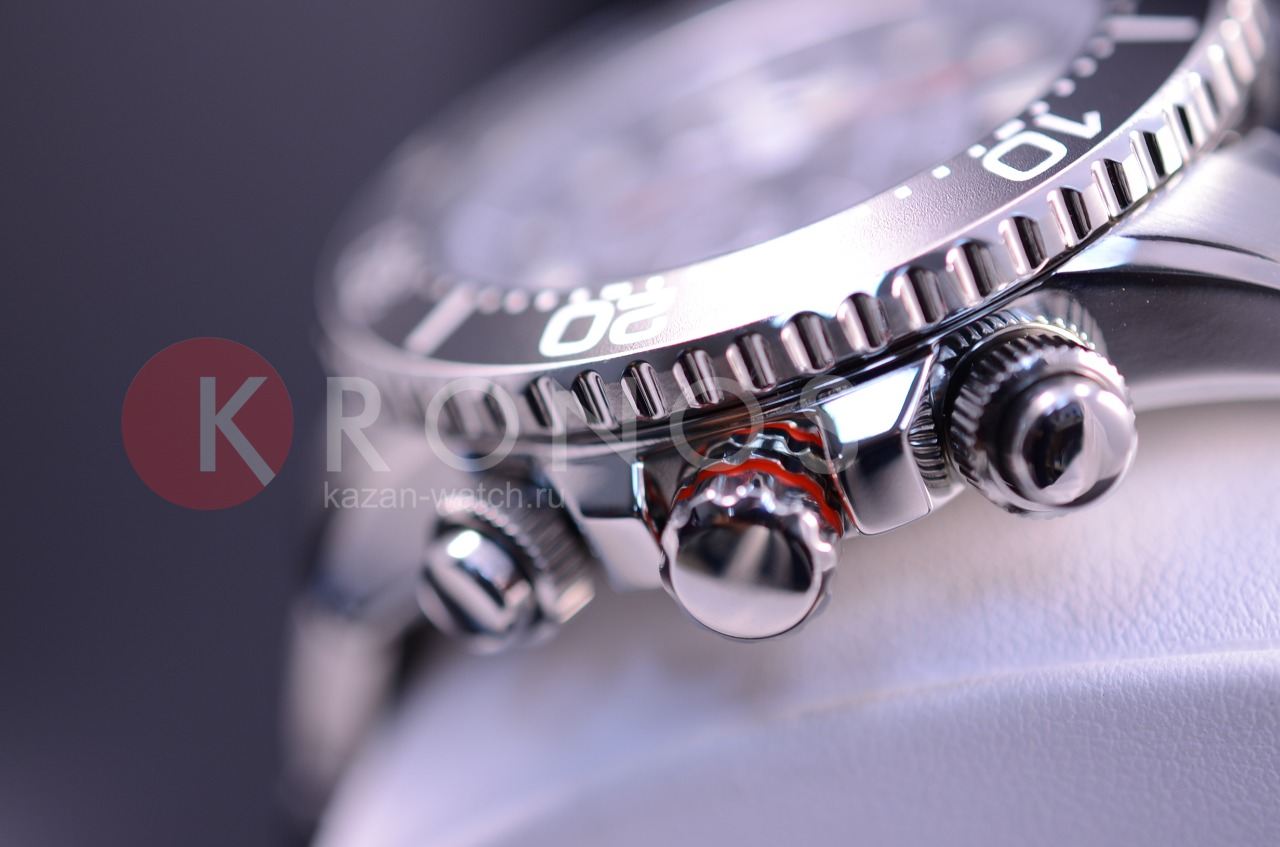 Мужские наручные часы пригодные для подводных погружений, работающие от солнечных батарей Секундомер с точностью показаний до 1/5 секунды и максимальным временем измерения - 60 минут. Индикация числа. Отдельный циферблат с 24-х часовым форматом времени (суточник). Устойчивое к механическим воздействиям многослойное минеральное стекло изготовленное по технологии Hardlex. Вращающийся безель. Задняя крышка с винтовым фиксатором. Завинчивающиеся заводная головка и кнопки управления хронографом. Минеральное стекло повышенной прочности. Люминесцентные стрелки и индексы. Диаметр корпуса 44 мм.