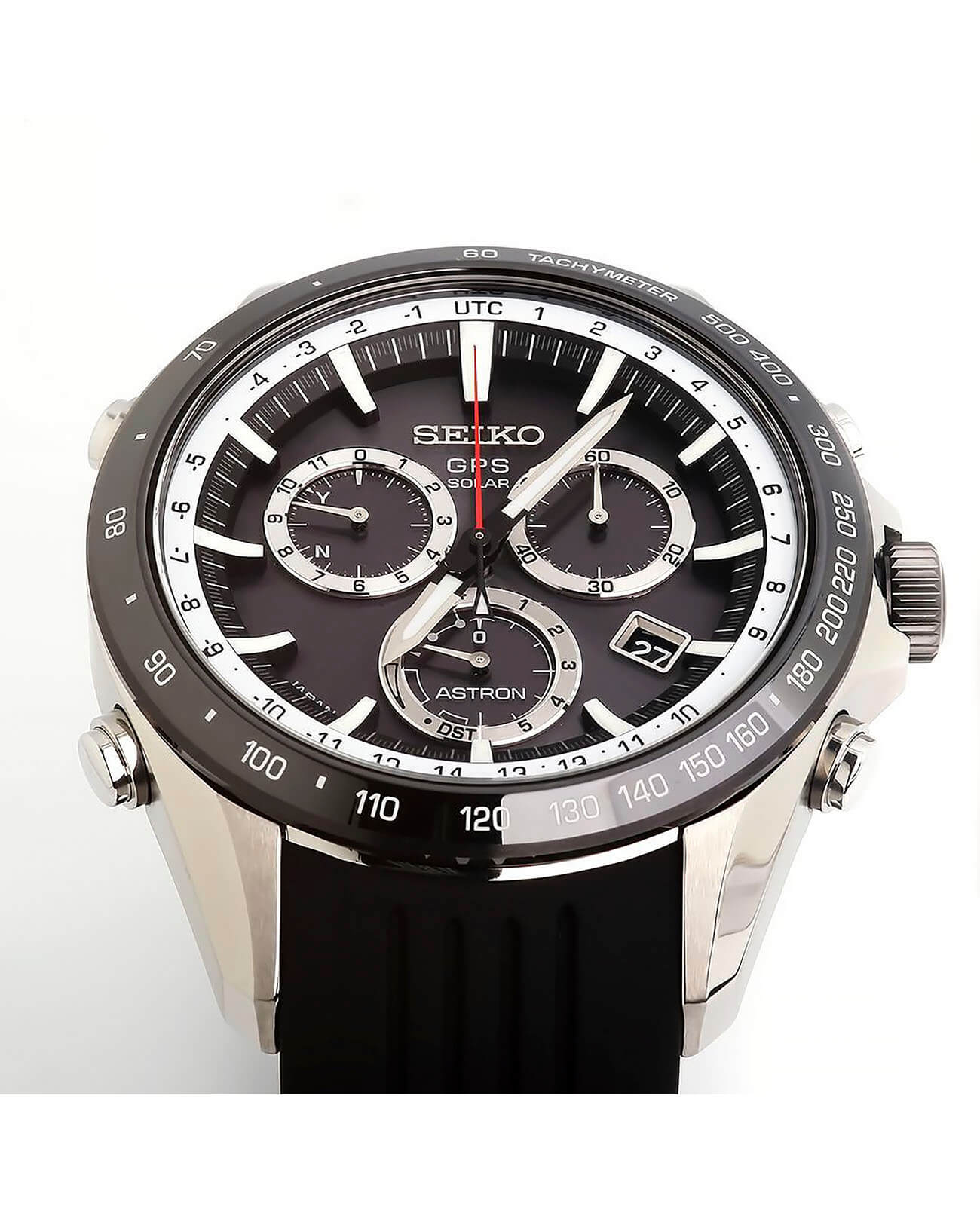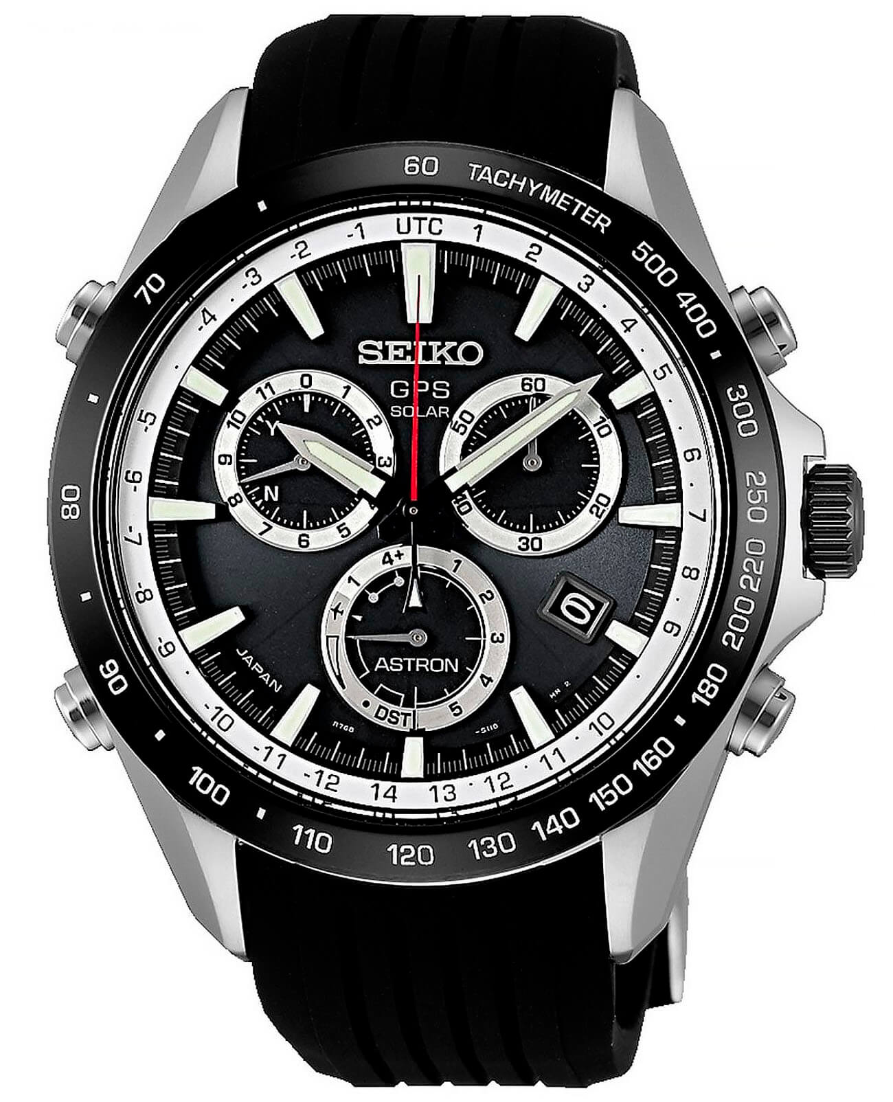 . Функция позволяет с высокой точностью устанавливать и корректировать время, дату и часовой пояс. Керамический безельБезельВнешний ободок, закрепляющий стекло. В спортивных часах так называется поворотное кольцо с делениями на циферблате, выполняет роль таймера – замеряет отрезки времени на шкале. Неподвижный безель – элемент декора. Однонаправленно вращающийся безель на дайверских часах позволяет фиксировать моменты погружения и выныривания на поверхность. облегчает вес конструкции и сохраняет безупречный вид аксессуара. Японский кварцевый калибр Seiko 8X82. Функция с режимом сохранения энергии. Водостойкость 100 метров. Стрелки и часовые метки с подсветкой LumiBriteЛюминесцентное покрытиеПозволяет считывать показания времени в темноте. Производители наносят на стрелки, часовые индексы, безель или поверхность циферблата светонакопительный состав, дающий холодное свечение.. Каучуковый ремешок. Антибликовое покрытие стекла из сапфира. Автоматический календарь, секундомер, тахиметрТахиметрРазмеченная шкала, располагается на ободке или безеле часов. Тахиметр позволяет рассчитать скорость на определённом участке пути, расстояние измеряется в километрах или милях.. Диаметр корпуса: 45 мм.