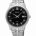 Современные японские наручные кварцевые мужские часы. Круглый корпус часов выполнен из высокопрочной стали с антикоррозийными свойствами. Черный фон циферблата и стальные элементы дизайна. Водонепроницаемость 10 ATM. Минеральное стекло Hardlex, устойчивое к появлению царапин. Часы оснащены календарем.