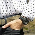 Оптимизированный безельБезельВнешний ободок, закрепляющий стекло. В спортивных часах так называется поворотное кольцо с делениями на циферблате, выполняет роль таймера – замеряет отрезки времени на шкале. Неподвижный безель – элемент декора. Однонаправленно вращающийся безель на дайверских часах позволяет фиксировать моменты погружения и выныривания на поверхность. с PVD-покрытиемPVDУльтратонкое покрытие наносится в технике вакуумного напыления, сочетает в себе нитрид титана особой прочности со слоем золота или оксида хрома. Несёт в себе декоративную или защитную функцию. не только украшает часы, но и защищает их от повреждений, что особенно важно в условиях активного использования. Класс водозащиты в 1000 метров позволяет вам смело нырять, плавать и заниматься любыми водными видами спорта без опасения за сохранность устройства.