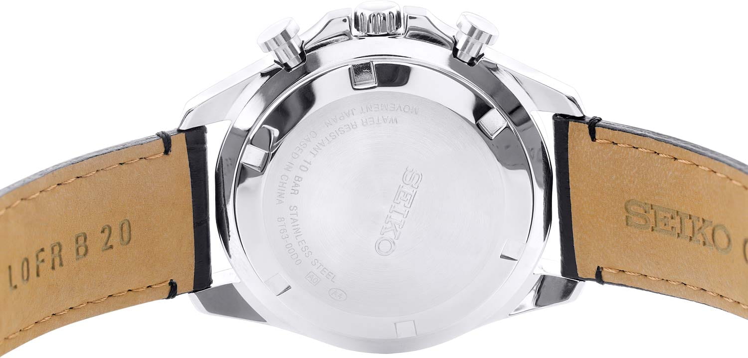 Мужские японские часы-хронографХронографФункция позволяет измерять отрезки времени с особой точностью: часы, минуты, секунды. Верным признаком хронографа является наличие на циферблате 3 дополнительных окошек-счётчиков. с секундомеромСекундомерСекундоме́р — прибор, способный измерять интервалы времени с точностью до долей секунды. Seiko Spirit Chronograph SBTR021 — это великолепное сочетание стиля и функциональности, созданное для современных искателей приключений. Минеральное стеклоМинеральное стеклоМинеральное стекло представляет собой искусственно выращенный минерал кварца. Такое стекло отличается особой устойчивостью к повреждениям и царапинам. Уступает по некоторым качествам сапфировому стеклу. с повышенной прочности Hardlex гарантирует защиту циферблата от царапин, сохраняя их безупречный вид на протяжении долгого времени. Внутри этих часов установлен кварцевый механизм, который обеспечивает высокую точность и надежность, позволяя вам всегда оставаться в курсе времени. Класс водозащиты в 100 метров позволяет вам не только плавать и нырять, но и заниматься разнообразными водными видами спорта, уверенно полагаясь на это надежное устройство, которое выдержит даже самые экстремальные условия. Корпус часов изготовлены из прочной нержавеющей стали, что укрепляет их долговечность и подчеркивает современный дизайн. Неподвижный безельБезельВнешний ободок, закрепляющий стекло. В спортивных часах так называется поворотное кольцо с делениями на циферблате, выполняет роль таймера – замеряет отрезки времени на шкале. Неподвижный безель – элемент декора. Однонаправленно вращающийся безель на дайверских часах позволяет фиксировать моменты погружения и выныривания на поверхность. с PVD-покрытиемPVDУльтратонкое покрытие наносится в технике вакуумного напыления, сочетает в себе нитрид титана особой прочности со слоем золота или оксида хрома. Несёт в себе декоративную или защитную функцию. черного цвета, диаметр 42 мм. Шкала тахиметраТахиметрРазмеченная шкала, располагается на ободке или безеле часов. Тахиметр позволяет рассчитать скорость на определённом участке пути, расстояние измеряется в километрах или милях. по внешнему краю. Удобное окошко даты в позиции между 4 и 5 часов, делает эти часы еще более практичными, позволяя быстро сверять текущую дату. Кроме того, стрелки и метки часов оснащены люминесцентным покрытиемЛюминесцентное покрытиеПозволяет считывать показания времени в темноте. Производители наносят на стрелки, часовые индексы, безель или поверхность циферблата светонакопительный состав, дающий холодное свечение., что обеспечивает отличную видимость даже в условиях низкой освещенности, поэтому вы всегда сможете узнать время, независимо от окружающей среды. Кожаный ремешок на застёжке-бабочке с кнопкамиЗастёжка "бабочка"Такой вид застёжки дополняется предохранителями, помогающими избежать случайного раскрытия браслета. Обладают изящным исполнением. обеспечивает комфорт и удобство в использовании, добавляя завершающий штрих к этому стильному и высокоэффективному аксессуару.