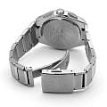 Мужские кварцевые часы Seiko — это высокотехнологичный аксессуар с солнечным питанием и радиосинхронизацией. Корпус диаметром 43 мм и толщиной 11,4 мм выполнен из гипоаллергенного титана. БезельБезельВнешний ободок, закрепляющий стекло. В спортивных часах так называется поворотное кольцо с делениями на циферблате, выполняет роль таймера – замеряет отрезки времени на шкале. Неподвижный безель – элемент декора. Однонаправленно вращающийся безель на дайверских часах позволяет фиксировать моменты погружения и выныривания на поверхность. титановый с DLC-покрытиемDLC-покрытиеDiamond like carbon - одно из лучших видов покрытия, представляющее собой углерод с алмазными свойствами. На поверхность материала наносятся распавшиеся молекулы углерода, превращающиеся в плёнку из алмазоподобных связей, которая перенимает твёрдость алмаза.. Циферблат синего цвета оформлен индексами и стрелками. Окошко даты расположено в положении 3 часов. Стрелки и метки с люминесцентным покрытиемЛюминесцентное покрытиеПозволяет считывать показания времени в темноте. Производители наносят на стрелки, часовые индексы, безель или поверхность циферблата светонакопительный состав, дающий холодное свечение. LumiBrite, обеспечивающим хорошую читаемость в темноте. Циферблат защищён сапфировым стекломСапфировое стеклоПрочный и надёжный материал из кристалла сапфира синтетического происхождения, характеризующийся особой твёрдостью и устойчивостью к царапинам и повреждениям. с антибликовым покрытиемАнтибликовое покрытиеСлой оксида металла в 0,13-0,3 микрон, благодаря которому стекло часов не бликует и не отражает свет. Антибликовое покрытие уменьшает отражение света в 10 раз, обеспечивая отличную читаемость показателей циферблата. для максимальной прозрачности. Механизм — кварцевый калибр 8B63 с технологией Tough SolarTough SolarТехнология основана на подзарядке аккумулятора от источника солнечного света, специальная панель улавливает солнечные лучи и преобразует их в энергию для работы часов. Достаточно пары минут нахождения на солнце для функционирования часов в течении суток., обеспечивающей работу до 6 месяцев в обычном режиме и до 2 лет в режиме энергосбережения. Часы поддерживают автоматическую радиокоррекцию времени, имеют функцию мирового времениМировое время Полезное часовое усложнение, отображающее время в основных городах и известных областях по всему миру, оно связано с часовыми поясами, удобно для путешественников и бизнесменов. , вечный календарьВечный календарьКлассическое часовое усложнение, представляющее собой календарь, рассчитанный на несколько лет вперёд (стандартно – до 2099 года). Определяет текущую дату, день недели, месяц. (до 28 февраля 2100 года), 12/24-часовой формат времени и устойчивы к магнитным полям. Часы оснащены титановым браслетом с раскладной застёжкойРаскладная застёжкаТакой тип застёжки используется только на браслетах из металла. Она никогда не раскрывается полностью, происходит разделение на 2 и более частей. Раскладывающая застёжка снизит вероятность потери часов к минимуму.. Водонепроницаемость 100 м позволяет использовать часы для плавания и повседневного ношения. Идеальный выбор для тех, кто ценит точность, лёгкость и передовые технологии.