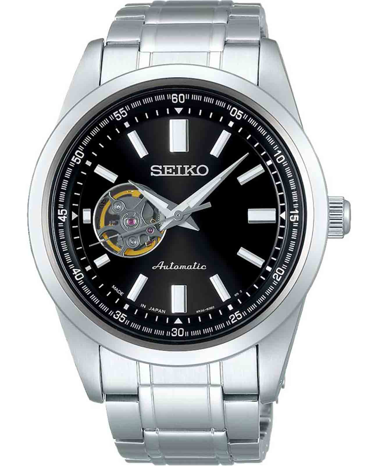 Японские мужские механические часы Seiko SCVE053 с автоподзаводом оснащены механизмом калибра 4R38, в котором установлено 24 камня и частота составляет 21600 полуколебаний в час. Запас хода механизма достигает 41 часа, а функция stop-second обеспечивает точную настройку времени. Круглый корпус из стали диаметром 42 мм и толщиной 11.6 мм защищен минеральным стекломМинеральное стеклоМинеральное стекло представляет собой искусственно выращенный минерал кварца. Такое стекло отличается особой устойчивостью к повреждениям и царапинам. Уступает по некоторым качествам сапфировому стеклу. повышенной прочности Hardlex. Черный циферблат выполнен по технологии Sunray (солнечные лучи) с метками в виде штрихов. Стрелки и метки с фирменным люминесцентным покрытиемЛюминесцентное покрытиеПозволяет считывать показания времени в темноте. Производители наносят на стрелки, часовые индексы, безель или поверхность циферблата светонакопительный состав, дающий холодное свечение. LumiBrite обеспечивают хорошую видимость в темное время суток. Прозрачное окошко на циферблате позволяет наблюдать за работой механизма, а завинчивающаяся прозрачная задняя крышка открывает доступ к обзору его мерного хода. Часы имеют водонепроницаемость до 100 метров, позволит плавать, нырять и заниматься другими водными видами спорта. Модель комплектуется стальным браслетом длиной 200 мм на раскладной застёжкеРаскладная застёжкаТакой тип застёжки используется только на браслетах из металла. Она никогда не раскрывается полностью, происходит разделение на 2 и более частей. Раскладывающая застёжка снизит вероятность потери часов к минимуму. с системой блокировки. Вес модели составляет 163 грамма, а высота корпуса — 51.5 мм. Элегантный дизайн и надежный механизм делают эти часы превосходным выбором для ценителей стильных и функциональных аксессуаров.