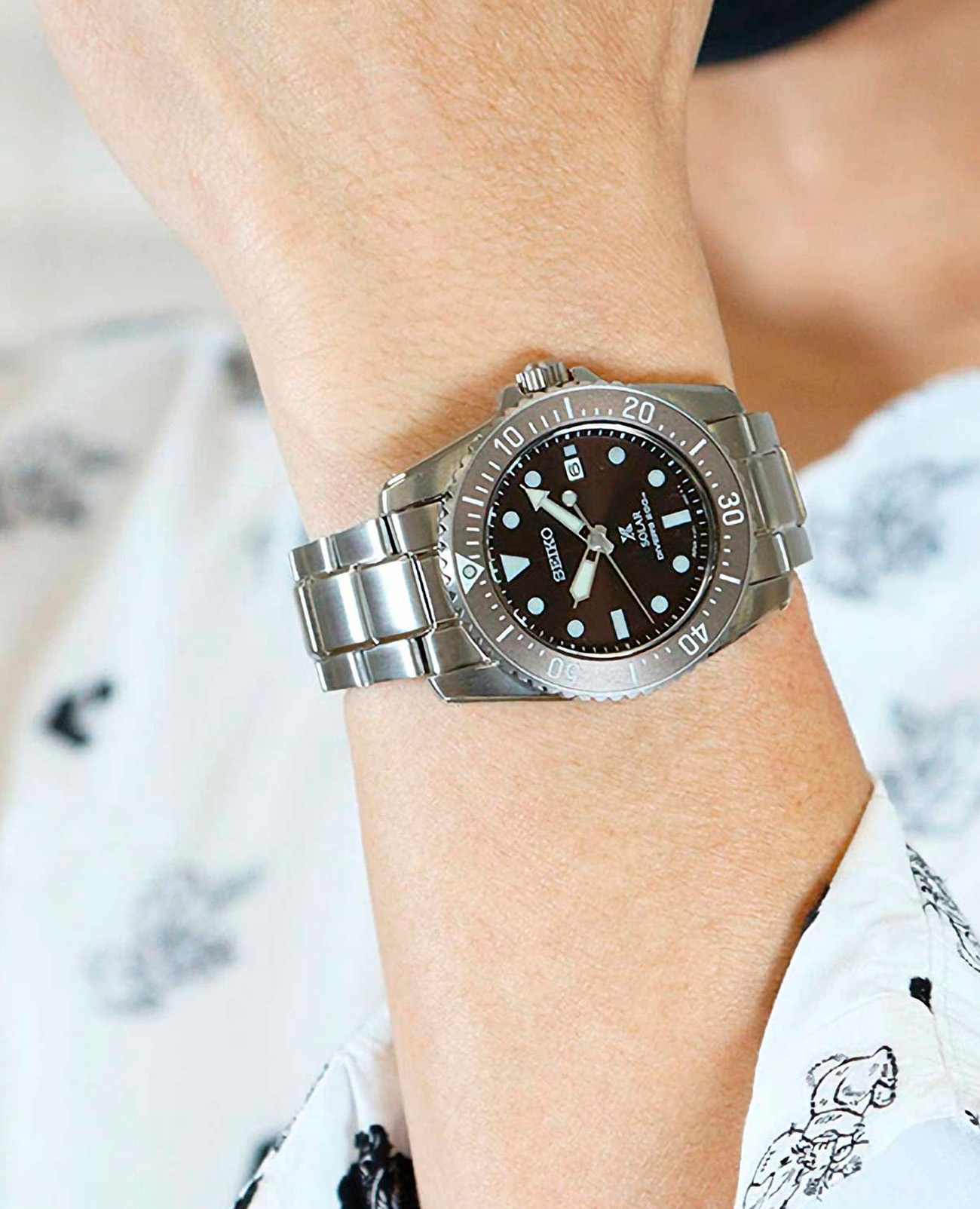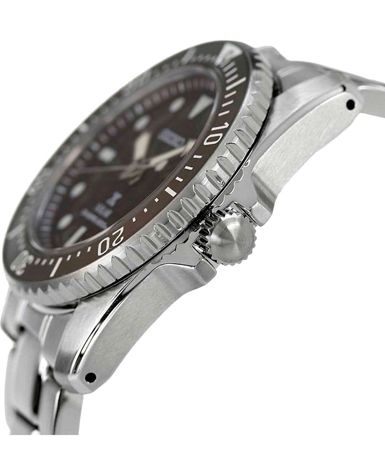Мужские наручные часы Seiko Prospex SNE571P1 из коллекции Prospex сочетают в себе спортивный дизайн и надежность современных технологий. Модель обладает круглым корпусом диаметром 38,5 мм, изготовленным из нержавеющей стали, что обеспечивает высокую устойчивость к внешним воздействиям . Защита циферблата выполнена с использованием сапфирового стеклаСапфировое стеклоПрочный и надёжный материал из кристалла сапфира синтетического происхождения, характеризующийся особой твёрдостью и устойчивостью к царапинам и повреждениям., устойчивого к появлению царапин и обладающего высокой прозрачностью . БезельБезельВнешний ободок, закрепляющий стекло. В спортивных часах так называется поворотное кольцо с делениями на циферблате, выполняет роль таймера – замеряет отрезки времени на шкале. Неподвижный безель – элемент декора. Однонаправленно вращающийся безель на дайверских часах позволяет фиксировать моменты погружения и выныривания на поверхность. с PVD-покрытиемPVDУльтратонкое покрытие наносится в технике вакуумного напыления, сочетает в себе нитрид титана особой прочности со слоем золота или оксида хрома. Несёт в себе декоративную или защитную функцию.. Часы оснащены системой Solar, которая не требует замены батарейки и обеспечивает запас хода до 10 месяцев при полной зарядке аккумулятора . Кварцевый механизм с калибром V147 гарантирует высокую точность работы, а функция EOLEOLПредставляет собой систему, уведомляющую владельца часов о необходимости замены элемента питания. За 2 недели до полного разряда батарейки секундная стрелка перестаёт ходить чётко и начинает перепрыгивать на 3-4 деления. позволяет контролировать уровень заряда аккумулятора . Циферблат дополнен люминесцентным покрытиемЛюминесцентное покрытиеПозволяет считывать показания времени в темноте. Производители наносят на стрелки, часовые индексы, безель или поверхность циферблата светонакопительный состав, дающий холодное свечение., обеспечивающим видимость в темное время суток . Водонепроницаемость модели достигает 200 метров, что делает ее подходящей для плавания, ныряния и других водных видов спорта .