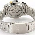 Наручные часы выполнены в классическом стиле, спортивные элементы делают акцент на надёжности и функциональности модели. Традиционный характер выражается в оснащении аксессуара японским механизмом Seiko 7S26 с возможностью ручного и автоматического завода. Калибр отличается сохранением запаса хода на 40 часов, его работу можно отследить через прозрачную завинчивающуюся заднюю крышку. В качестве основного материала была выбрана хирургическая сталь 316L, характеризующаяся устойчивостью к царапинам, повреждениям. Защиту циферблата обеспечивает прочное минеральное стеклоМинеральное стеклоМинеральное стекло представляет собой искусственно выращенный минерал кварца. Такое стекло отличается особой устойчивостью к повреждениям и царапинам. Уступает по некоторым качествам сапфировому стеклу. Hardlex. На стрелки нанесено люминесцентное покрытиеЛюминесцентное покрытиеПозволяет считывать показания времени в темноте. Производители наносят на стрелки, часовые индексы, безель или поверхность циферблата светонакопительный состав, дающий холодное свечение.. Водостойкость при давлении до 3 бар. На позиции 3 часов размещено окошко даты и дня недели. Диаметр корпуса: 37.5 мм.