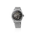 Механические часы Seiko Presage Classic SPB471 — это сочетание японского мастерства, технологичности и эстетики. Серия вдохновлена цветами и текстурами традиционных японских ремёсел, что нашло своё отражение в изысканном дизайне и высокой функциональности модели. Часы оснащены калибром 6R5J — надёжным механизмом с автоподзаводом и возможностью ручной подзаводки. Механизм работает на частоте 21 600 полуколебаний в час, имеет 24 драгоценных камня и обеспечивает запас хода до 72 часов. Также реализована функция стоп-секунды для точной установки времени и защита от магнитных полей до 4800 А/м. Через прозрачное окошко на циферблате можно наблюдать за работой механизма, а также отслеживать время в двух форматах — 12-часовом и 24-часовом. Циферблат чёрного цвета выполнен в стиле «широ-иро» — в оттенке неотбелённого шелка, который при разном освещении играет глубокими переливами. Его поверхность украшена тонкой текстурой, создающей ощущение благородства и изысканности. Метки выполнены в виде аккуратных штрихов, а центральные стрелки обеспечивают чёткость и лёгкость считывания информации. Защиту циферблата обеспечивает сапфировое стеклоСапфировое стеклоПрочный и надёжный материал из кристалла сапфира синтетического происхождения, характеризующийся особой твёрдостью и устойчивостью к царапинам и повреждениям. выпуклой формы с антибликовым покрытием с обеих сторон. Корпус изготовлен из нержавеющей стали, а задняя крышка — завинчивающаяся и прозрачная, что позволяет рассмотреть детали работы механизма. Браслет выполнен из стали и оснащён трёхсгибной раскладной застёжкойРаскладная застёжкаТакой тип застёжки используется только на браслетах из металла. Она никогда не раскрывается полностью, происходит разделение на 2 и более частей. Раскладывающая застёжка снизит вероятность потери часов к минимуму., обеспечивающей комфорт и уверенную фиксацию на запястье. Часы водонепроницаемы до 100 метров , что позволяет использовать их при плавании или занятиях водными видами спорта без глубокого погружения. Эти часы станут универсальным аксессуаром для тех, кто ценит сочетание культурного наследия, технологий и эстетики — идеальный выбор для повседневной носки и торжественных случаев.