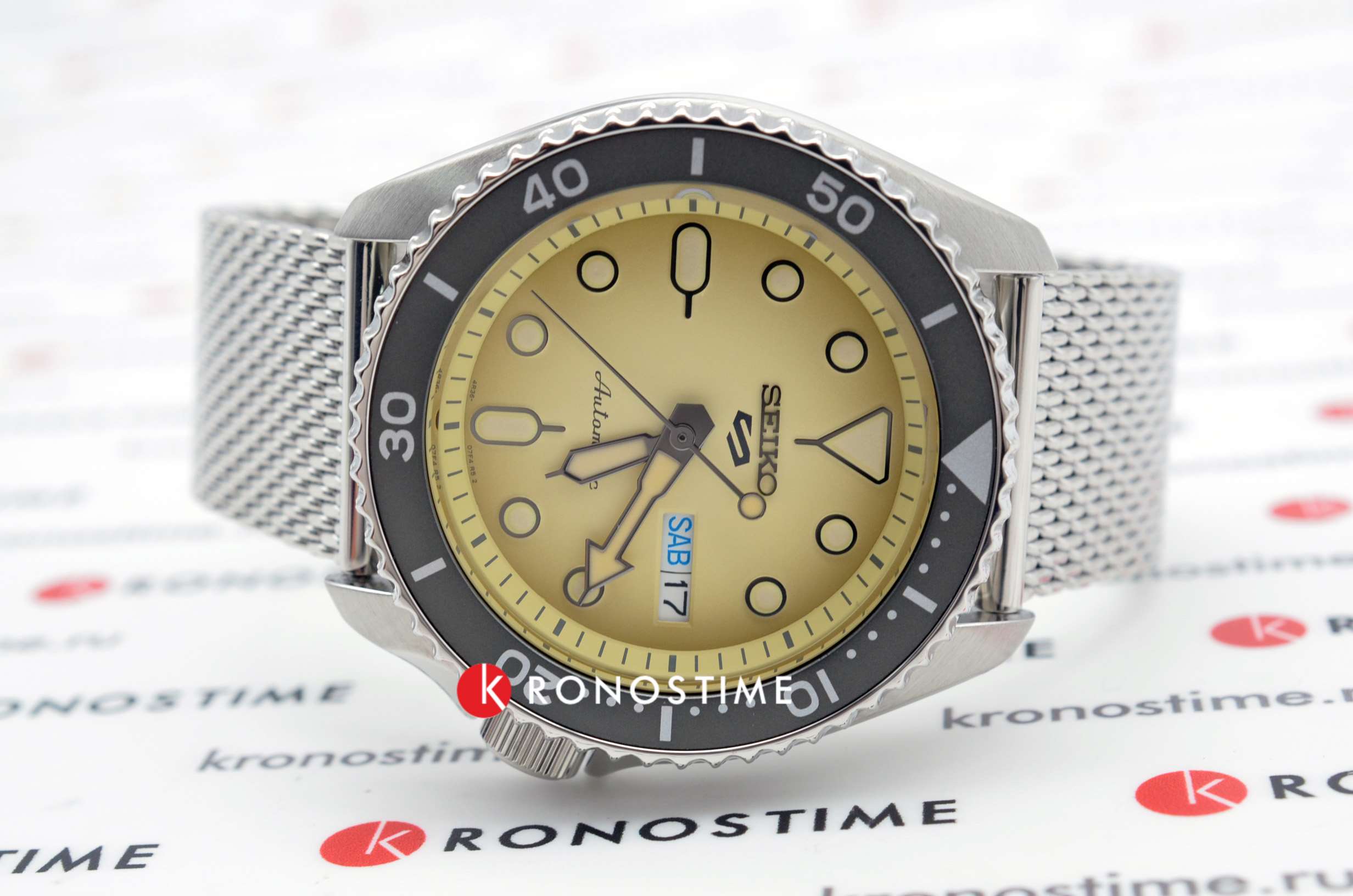 Часы оснащены механическим калибром 4R36 с автоподзаводом, обеспечивающим точность хода и запас хода до 41 часа. Функция отображения дня недели и даты расположена на отметке 3 часа, что добавляет практичности в повседневном использовании.