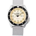 Часы Seiko 5 Sports SRPD67K1 сочетают в себе элегантный дизайн и надёжность, характерные для японского часового мастерства. Корпус диаметром 42,5 мм выполнен из нержавеющей стали, а кремовый циферблат защищён минеральным стекломМинеральное стеклоМинеральное стекло представляет собой искусственно выращенный минерал кварца. Такое стекло отличается особой устойчивостью к повреждениям и царапинам. Уступает по некоторым качествам сапфировому стеклу. с повышенной прочностью.