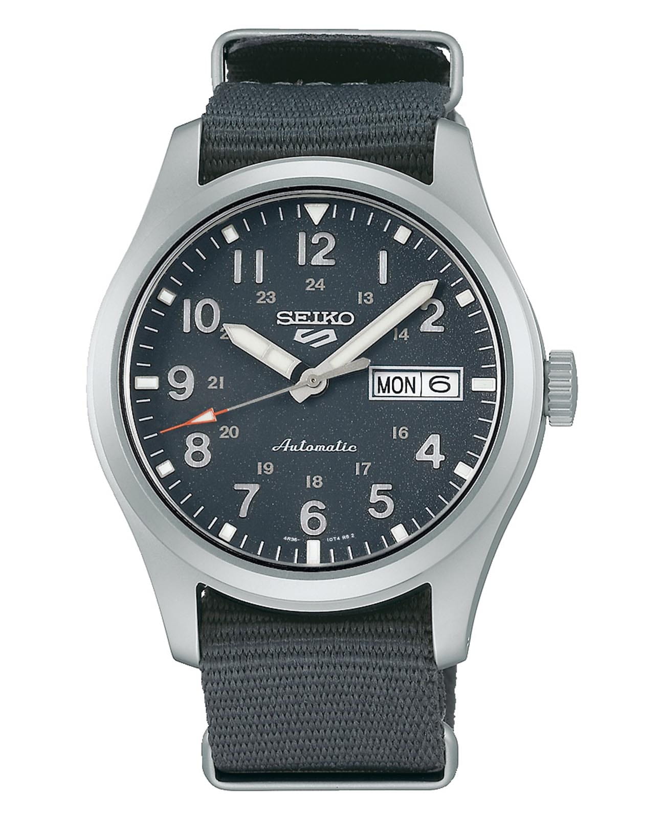 Механические часы Seiko 5 Sports Field series SRPG31K1S с автоподзаводом и возможностью ручной подзаводки оснащены калибром 4R36, в котором используется 24 драгоценных камня. Механизм обеспечивает запас хода до 41 часа и дополнен функцией стоп-секунды для точной установки времени, а также отображением дня недели и даты. Корпус изготовлен из нержавеющей стали и защищён минеральным стекломМинеральное стеклоМинеральное стекло представляет собой искусственно выращенный минерал кварца. Такое стекло отличается особой устойчивостью к повреждениям и царапинам. Уступает по некоторым качествам сапфировому стеклу. Hardlex с выпуклой формой, устойчивым к мелким повреждениям. Циферблат дополнен стрелками и метками с фирменным люминесцентным покрытиемЛюминесцентное покрытиеПозволяет считывать показания времени в темноте. Производители наносят на стрелки, часовые индексы, безель или поверхность циферблата светонакопительный состав, дающий холодное свечение. LumiBrite, обеспечивающим отличную читаемость даже в темноте. Часы обладают водонепроницаемостью , что соответствует защите на глубине до 100 метров, и имеют защиту от магнитных полей до 4800 А/м. Задняя крышка — завинчивающаяся и прозрачная, что позволяет наблюдать за работой механизма и подчёркивает внимание к внутренней отделке. Ремешок из прочного нейлона добавляет модели спортивного стиля и обеспечивает лёгкость и комфорт при ношении. Расстояние между ушками составляет 20 мм, что делает модель совместимой с различными типами ремешков. Эти часы станут универсальным аксессуаром для тех, кто ценит сочетание технологичности, прочности и эстетики — идеальный выбор как для повседневного использования, так и для активного образа жизни.