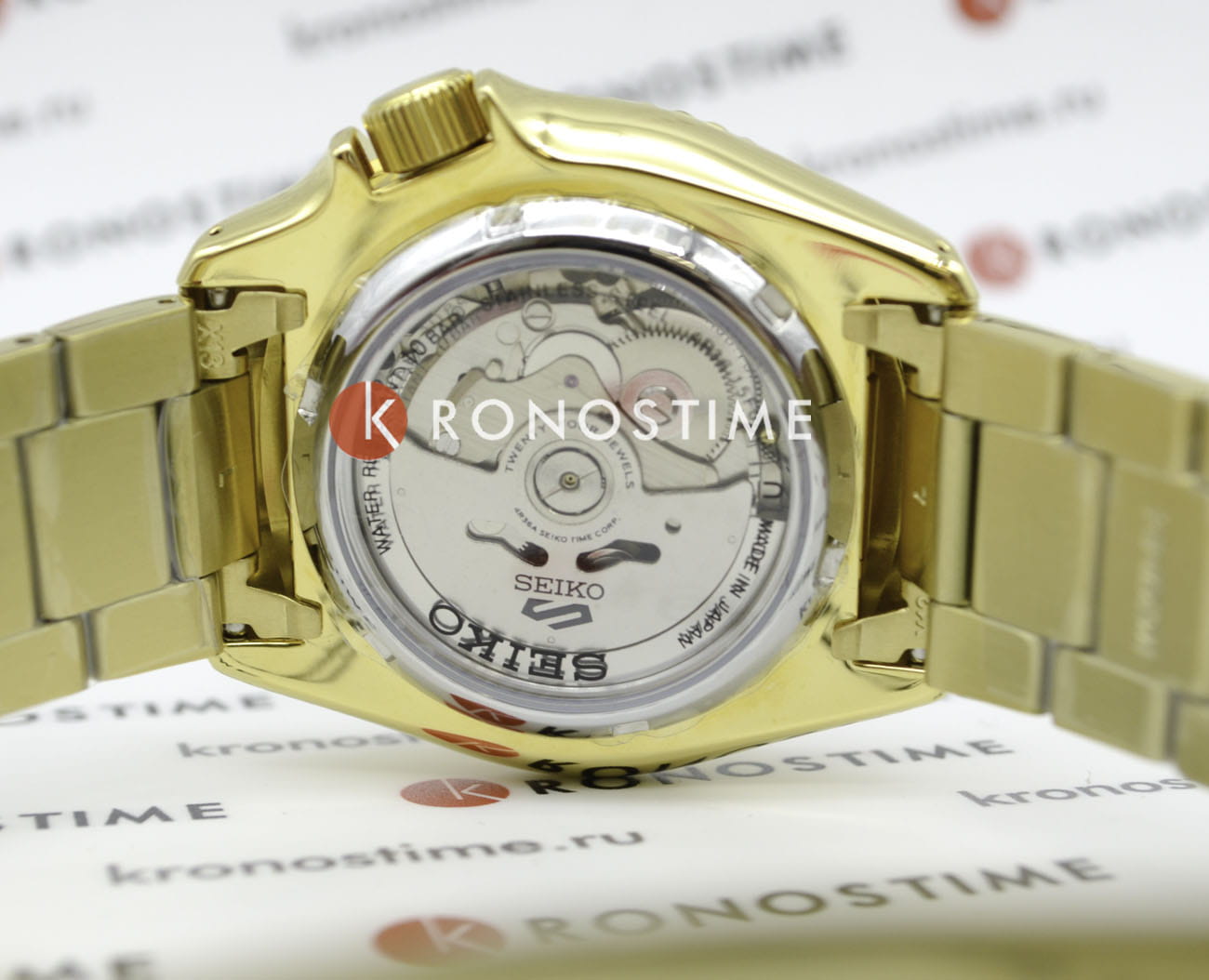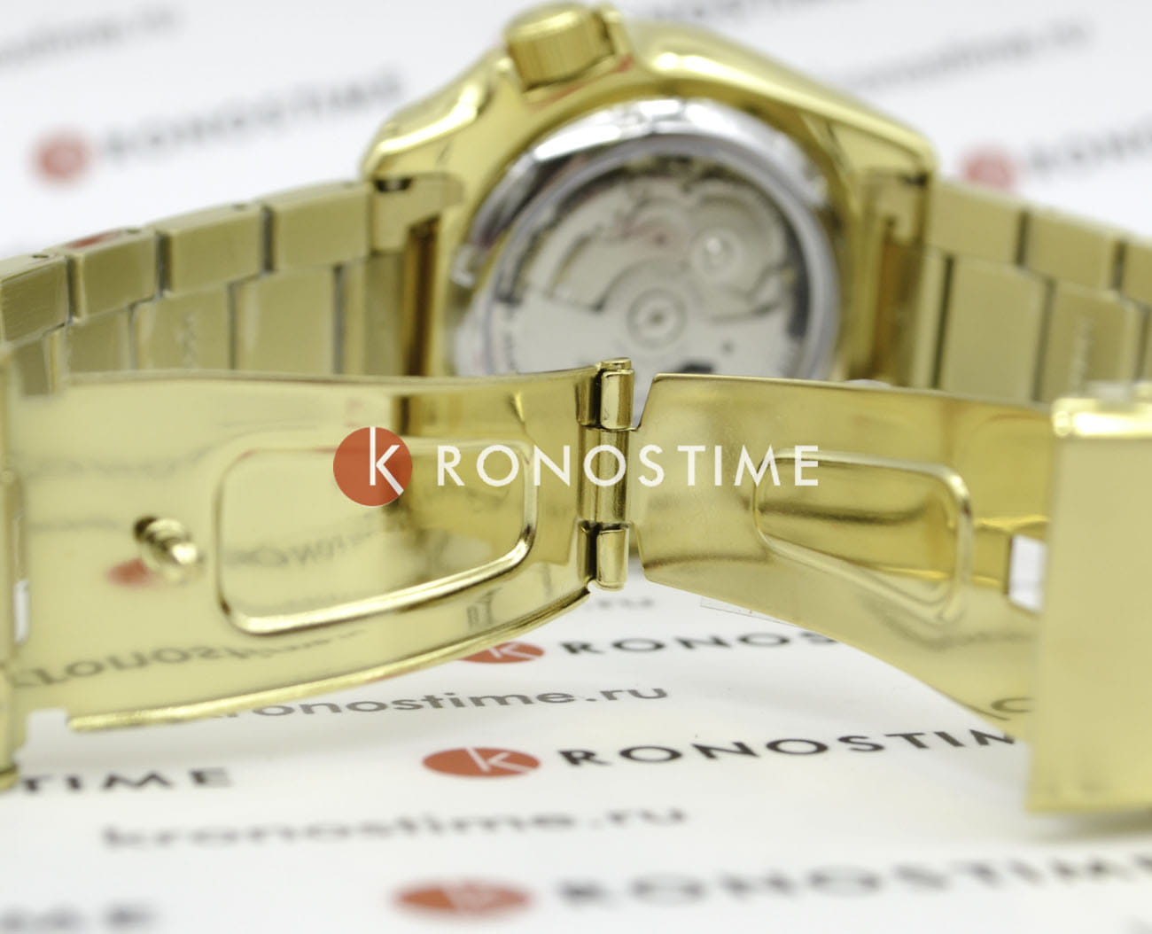 Водозащита 100 метров (10 бар) позволяет использовать часы для плавания и других водных видов спорта. Стальной браслет с PVD-покрытиемPVDУльтратонкое покрытие наносится в технике вакуумного напыления, сочетает в себе нитрид титана особой прочности со слоем золота или оксида хрома. Несёт в себе декоративную или защитную функцию. золотого цвета и раскладной застёжкойРаскладная застёжкаТакой тип застёжки используется только на браслетах из металла. Она никогда не раскрывается полностью, происходит разделение на 2 и более частей. Раскладывающая застёжка снизит вероятность потери часов к минимуму. обеспечивает комфортное ношение и надёжную фиксацию на запястье.