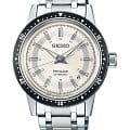 Мужские наручные часы Seiko SRPK61J1 из коллекции Presage Style 60s сочетают в себе классический дизайн и надежность современных технологий. Модель обладает круглым корпусом, изготовленным из нержавеющей стали, что обеспечивает высокую устойчивость к внешним воздействиям . Браслет также выполнен из нержавеющей стали с раскладной застежкойРаскладной замокДанный вариант застежки используется только на часах с металлическим браслетом. Отличительная особенность такого крепления в том, что длина браслета становится универсальной и вы можете самостоятельно отрегулировать нужный вам размер – застежка просто двигается по браслету часов., гарантирующей комфортное ношение .  БезельБезельВнешний ободок, закрепляющий стекло. В спортивных часах так называется поворотное кольцо с делениями на циферблате, выполняет роль таймера – замеряет отрезки времени на шкале. Неподвижный безель – элемент декора. Однонаправленно вращающийся безель на дайверских часах позволяет фиксировать моменты погружения и выныривания на поверхность. с PVD-покрытиемPVDУльтратонкое покрытие наносится в технике вакуумного напыления, сочетает в себе нитрид титана особой прочности со слоем золота или оксида хрома. Несёт в себе декоративную или защитную функцию.. Циферблат часов украшен текстурой, которая подчеркивает винтажный стиль модели. Для защиты используется минеральное стеклоМинеральное стеклоМинеральное стекло представляет собой искусственно выращенный минерал кварца. Такое стекло отличается особой устойчивостью к повреждениям и царапинам. Уступает по некоторым качествам сапфировому стеклу. Hardlex Crystal, обеспечивающее прочную защиту от царапин . Часы работают на автоматическом механизме с калибром 4R35, который включает возможность ручного завода и обладает запасом хода до 41 часа . Часы также оснащены люминесцентным покрытиемЛюминесцентное покрытиеПозволяет считывать показания времени в темноте. Производители наносят на стрелки, часовые индексы, безель или поверхность циферблата светонакопительный состав, дающий холодное свечение. на стрелках и метках, обеспечивающим отличную видимость в темноте, а также имеет водонепроницаемость WR 50, что позволяет защитить корпус от случайных брызг и кратковременного контакта с водой. Вдохновленные культурой 60-х годов, эти часы демонстрируют уникальный стиль и внимание к деталям.