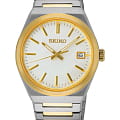 Мужские японские часы Seiko Conceptual Series Dress SUR558P1 с сапфировым стекломСапфировое стеклоПрочный и надёжный материал из кристалла сапфира синтетического происхождения, характеризующийся особой твёрдостью и устойчивостью к царапинам и повреждениям., кварцевый механизм с высокой точностью. Класс водозащиты: 100 метров, позволит плавать, нырять и заниматься другими водными видами спорта. Корпус часов изготовлен из стали. Стальной браслет с частичным PVD-покрытиемPVDУльтратонкое покрытие наносится в технике вакуумного напыления, сочетает в себе нитрид титана особой прочности со слоем золота или оксида хрома. Несёт в себе декоративную или защитную функцию. на раскладной застёжкеРаскладная застёжкаТакой тип застёжки используется только на браслетах из металла. Она никогда не раскрывается полностью, происходит разделение на 2 и более частей. Раскладывающая застёжка снизит вероятность потери часов к минимуму.. Стрелки и метки с люминесцентным покрытиемЛюминесцентное покрытиеПозволяет считывать показания времени в темноте. Производители наносят на стрелки, часовые индексы, безель или поверхность циферблата светонакопительный состав, дающий холодное свечение. LumiBrite. Окошко даты находится в положении 3 часа. Неподвижный безельБезельВнешний ободок, закрепляющий стекло. В спортивных часах так называется поворотное кольцо с делениями на циферблате, выполняет роль таймера – замеряет отрезки времени на шкале. Неподвижный безель – элемент декора. Однонаправленно вращающийся безель на дайверских часах позволяет фиксировать моменты погружения и выныривания на поверхность. с PVD-покрытиемPVDУльтратонкое покрытие наносится в технике вакуумного напыления, сочетает в себе нитрид титана особой прочности со слоем золота или оксида хрома. Несёт в себе декоративную или защитную функцию..