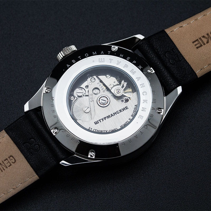 Лимитированные мужские российские механические часы Штурманские Открытый Космос 2416/1861994, механический механизм (автоматический калибр) с высокой точностью. Минеральное стеклоМинеральное стеклоМинеральное стекло представляет собой искусственно выращенный минерал кварца. Такое стекло отличается особой устойчивостью к повреждениям и царапинам. Уступает по некоторым качествам сапфировому стеклу. устойчивое к появлению царапин, обладающее высокой прозрачностью. Класс водозащиты: 100 метров, позволит плавать, нырять и заниматься другими водными видами спорта. Корпус часов изготовлен из стали. Стальной браслет на раскладной застёжкеРаскладная застёжкаТакой тип застёжки используется только на браслетах из металла. Она никогда не раскрывается полностью, происходит разделение на 2 и более частей. Раскладывающая застёжка снизит вероятность потери часов к минимуму.. Стрелки и метки с люминесцентным покрытиемЛюминесцентное покрытиеПозволяет считывать показания времени в темноте. Производители наносят на стрелки, часовые индексы, безель или поверхность циферблата светонакопительный состав, дающий холодное свечение.. Окошко даты находится в положении 3 часа.
