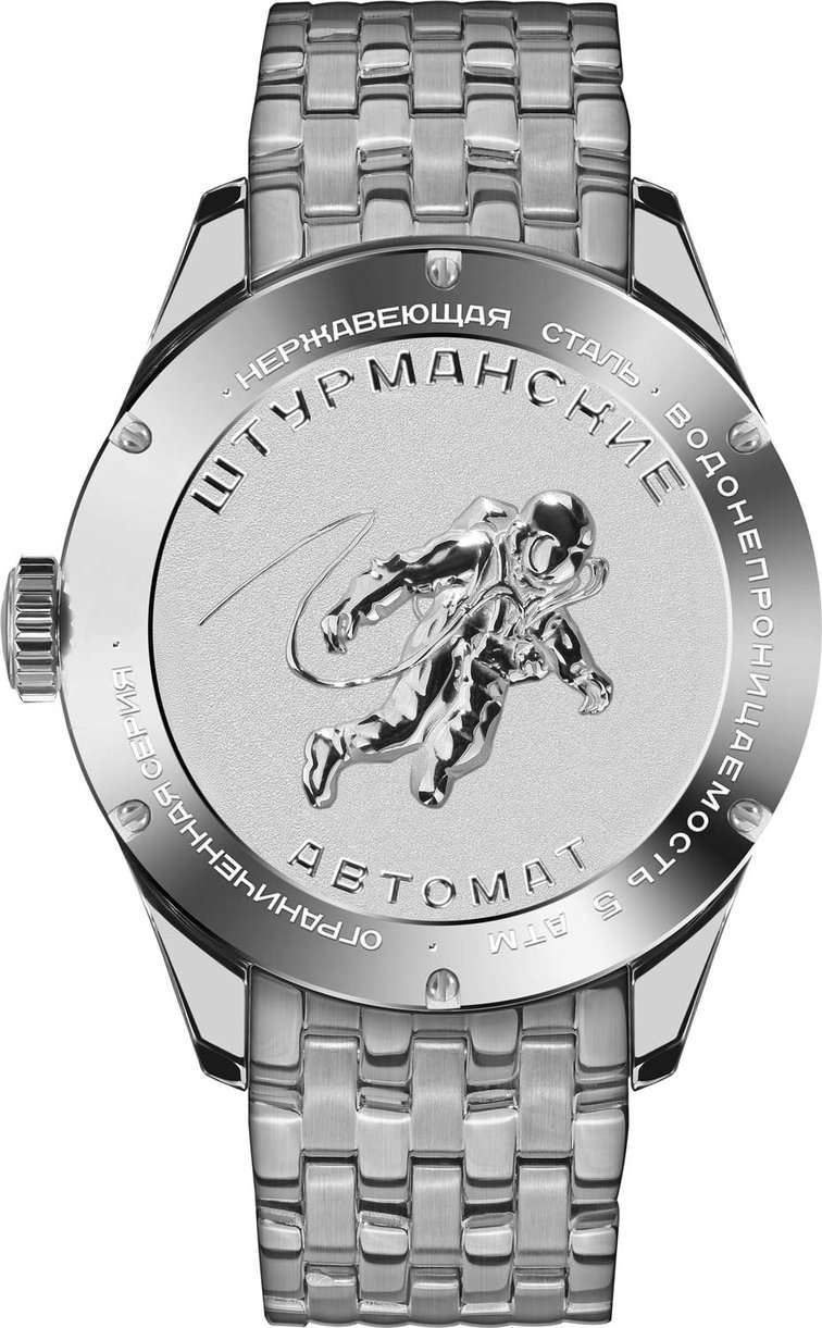 Мужские часы Штурманские Открытый космос NH34/1891050B - это воплощение элегантности и точности. Лимитированная серия — 3000 экземпляров. Корпус из нержавеющей стали диаметром 42 мм идеально сбалансирован и элегантен. Минеральное стеклоМинеральное стеклоМинеральное стекло представляет собой искусственно выращенный минерал кварца. Такое стекло отличается особой устойчивостью к повреждениям и царапинам. Уступает по некоторым качествам сапфировому стеклу. защищает циферблат от царапин. Стальной браслет на застёжке-бабочке с кнопкамиЗастёжка "бабочка"Такой вид застёжки дополняется предохранителями, помогающими избежать случайного раскрытия браслета. Обладают изящным исполнением. идеально дополняют дизайн часов, обеспечивая комфортное ношение. Стрелки и метки на циферблате имеют люминесцентное покрытиеЛюминесцентное покрытиеПозволяет считывать показания времени в темноте. Производители наносят на стрелки, часовые индексы, безель или поверхность циферблата светонакопительный состав, дающий холодное свечение. позволяющее легко определять время даже в темноте. Запас хода 41 часов. Рифленая заводная головка. Гильошированный циферблат выполнен по технологии Sunray (солнечные лучи). Окошко даты в накладной рамке находится в положении 3 часа. Индивидуальная нумерация. Задняя крышка украшена барельефом с изображением космонавта в открытом космосе, созданным по мотивам картины Алексея Леонова.