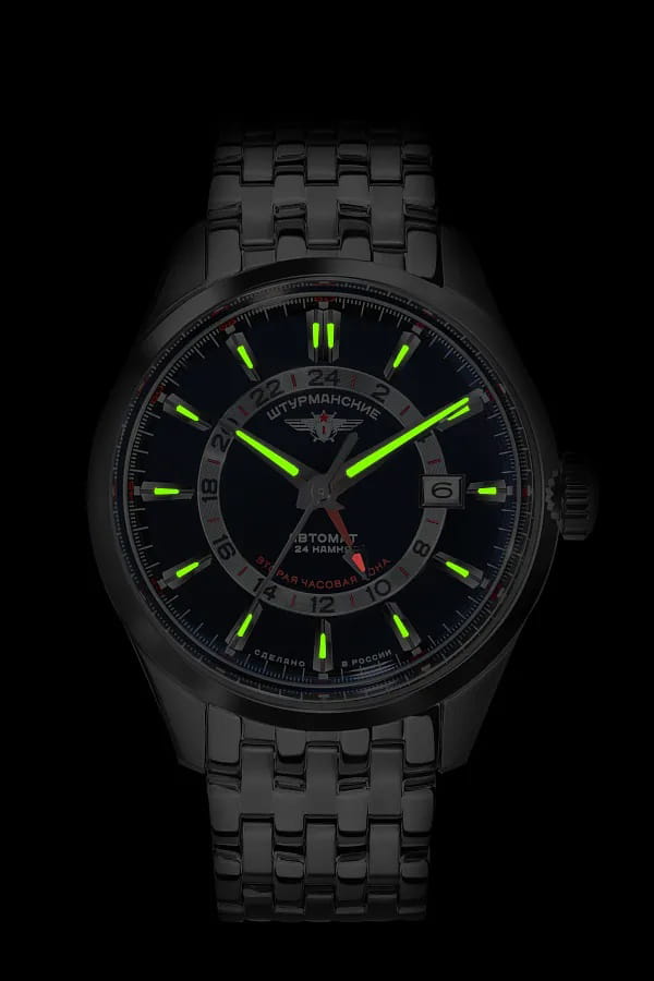 Мужские механические часы Штурманские NH34/1891053B — это лимитированная серия, выпущенная всего 3000 экземпляров. Модель оснащена японским механизмом Seiko NH34, обеспечивающим запас хода до 42 часов. Корпус выполнен из нержавеющей стали диаметром 42 мм и толщиной 13,5 мм, а его поверхность защищена минеральным стекломМинеральное стеклоМинеральное стекло представляет собой искусственно выращенный минерал кварца. Такое стекло отличается особой устойчивостью к повреждениям и царапинам. Уступает по некоторым качествам сапфировому стеклу., устойчивым к повреждениям. Задняя крышка крепится на винтах, а заводная головка имеет диаметр 7 мм. Циферблат чёрного цвета дополнен индексами, а его поверхность защищена сапфировым стекломСапфировое стеклоПрочный и надёжный материал из кристалла сапфира синтетического происхождения, характеризующийся особой твёрдостью и устойчивостью к царапинам и повреждениям., устойчивым к повреждениям. Стрелки и метки имеют люминесцентное покрытиеЛюминесцентное покрытиеПозволяет считывать показания времени в темноте. Производители наносят на стрелки, часовые индексы, безель или поверхность циферблата светонакопительный состав, дающий холодное свечение. Super-LumiNova®, обеспечивающее отличную читаемость даже в условиях слабого освещения. Браслет из нержавеющей стали шириной 20 мм оснащён застёжкой «бабочка» с кнопкамиЗастёжка "бабочка"Такой вид застёжки дополняется предохранителями, помогающими избежать случайного раскрытия браслета. Обладают изящным исполнением. , обеспечивающей комфорт и надёжную фиксацию на запястье. Водонепроницаемость позволяет использовать модель при мытье рук или под лёгким дождём. Функциональность модели включает отображение времени (часы, минуты, секунды), дату и второй часовой пояс. Эти часы станут универсальным аксессуаром для тех, кто ценит сочетание стиля, функциональности и надёжности — идеальный выбор для повседневной носки и активного образа жизни.