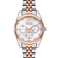 Женские наручные часы Slazenger SL.09.1990.4.01 сочетают в себе элегантный дизайн и практичность современных технологий. Модель обладает круглым корпусом диаметром 34 мм, изготовленным из суперметалла, что обеспечивает высокую устойчивость к внешним воздействиям. БезельБезельВнешний ободок, закрепляющий стекло. В спортивных часах так называется поворотное кольцо с делениями на циферблате, выполняет роль таймера – замеряет отрезки времени на шкале. Неподвижный безель – элемент декора. Однонаправленно вращающийся безель на дайверских часах позволяет фиксировать моменты погружения и выныривания на поверхность. с IP-покрытиемIP-покрытиеМетод ионного напыления. Демонстрирует повышенную устойчивость к истиранию, окислению и химическим веществам. Под воздействием высокого давления и температуры около 1500°C молекулы металла надёжно соединяются с частицами корпуса часов. Браслет выполнен из того же материала  на раскладной застёжкеРаскладная застёжкаТакой тип застёжки используется только на браслетах из металла. Она никогда не раскрывается полностью, происходит разделение на 2 и более частей. Раскладывающая застёжка снизит вероятность потери часов к минимуму., гарантирующей комфортное ношение. Белый циферблат оснащен индексами для лучшей читаемости времени и дополнен функцией календаря. Для защиты применяется минеральное стеклоМинеральное стеклоМинеральное стекло представляет собой искусственно выращенный минерал кварца. Такое стекло отличается особой устойчивостью к повреждениям и царапинам. Уступает по некоторым качествам сапфировому стеклу., обеспечивающее прочную защиту от царапин. Часы работают на японском кварцевом механизме, что гарантирует точное время без необходимости подзаводки. Водонепроницаемость составляет 3 атмосферы (30 метров), что позволяет использовать их в повседневной жизни, но не рекомендуется для плавания или занятий водными видами спорта.
