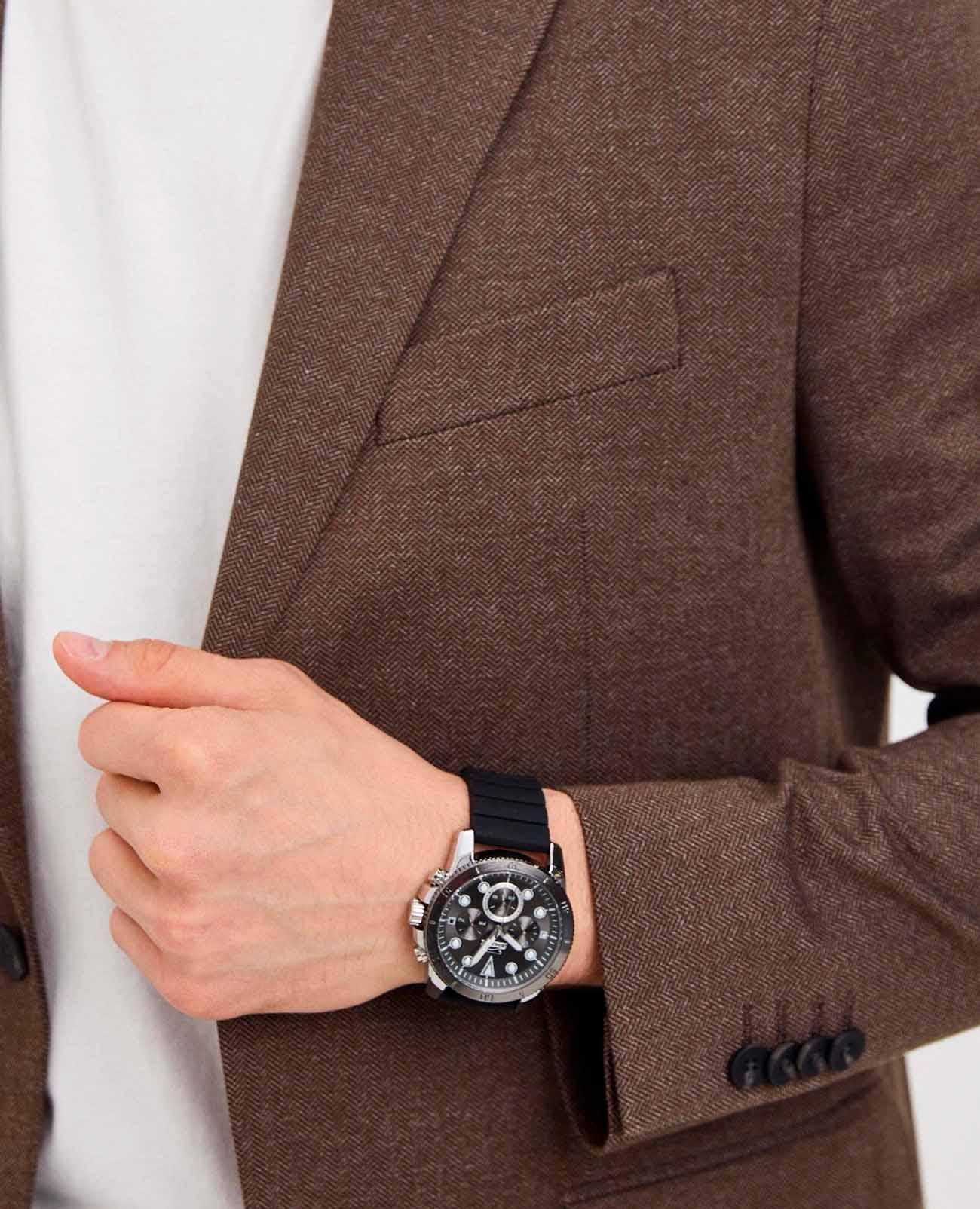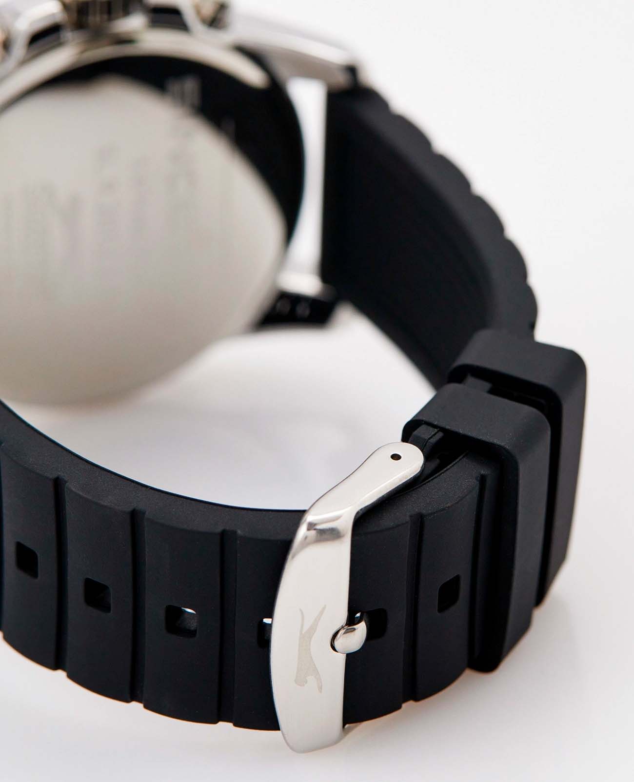 Мужские наручные часы Slazenger SL.09.2012.2.01 в себе классический дизайн и надежность современных технологий. Модель обладает круглым корпусом диаметром 47 мм и толщиной 13 мм, изготовленным из суперметалла , что обеспечивает высокую устойчивость к внешним воздействиям. БезельБезельВнешний ободок, закрепляющий стекло. В спортивных часах так называется поворотное кольцо с делениями на циферблате, выполняет роль таймера – замеряет отрезки времени на шкале. Неподвижный безель – элемент декора. Однонаправленно вращающийся безель на дайверских часах позволяет фиксировать моменты погружения и выныривания на поверхность. с IP-покрытиемIP-покрытиеМетод ионного напыления. Демонстрирует повышенную устойчивость к истиранию, окислению и химическим веществам. Под воздействием высокого давления и температуры около 1500°C молекулы металла надёжно соединяются с частицами корпуса часов.. Силиконовый ремешок на стандартной застежке гарантирует комфортное ношение и безопасность. Чёрный циферблат дополнен индексами и тремя малыми циферблатами для отображения даты, дня недели и текущего времени в формате 24 часа, а также защищен прочным минеральным стекломМинеральное стеклоМинеральное стекло представляет собой искусственно выращенный минерал кварца. Такое стекло отличается особой устойчивостью к повреждениям и царапинам. Уступает по некоторым качествам сапфировому стеклу. с люминесцентным покрытием для лучшей видимости в темноте. Часы работают на кварцевом механизме, что гарантирует точное время без необходимости подзаводки [[2]]. Водонепроницаемость часов достигает уровня WR50 (5 атмосфер), что позволяет использовать их во время плавания, однако не рекомендуется для глубоководного дайвинга. Вес часов составляет 102 грамма, что делает их удобными для длительного ношения.