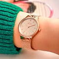 Женские наручные часы Slazenger SL.09.2015.3.02 сочетают в себе элегантный дизайн и надежность современных технологий. Модель обладает круглым корпусом диаметром 35 мм, изготовленным из суперметалла с IP-покрытиемIP-покрытиеМетод ионного напыления. Демонстрирует повышенную устойчивость к истиранию, окислению и химическим веществам. Под воздействием высокого давления и температуры около 1500°C молекулы металла надёжно соединяются с частицами корпуса часов. розового золота, что обеспечивает высокую устойчивость к внешним воздействиям. Браслет миланского плетения из суперметалла с IP-покрытиемIP-покрытиеМетод ионного напыления. Демонстрирует повышенную устойчивость к истиранию, окислению и химическим веществам. Под воздействием высокого давления и температуры около 1500°C молекулы металла надёжно соединяются с частицами корпуса часов. на раскладном замкеРаскладной замокДанный вариант застежки используется только на часах с металлическим браслетом. Отличительная особенность такого крепления в том, что длина браслета становится универсальной и вы можете самостоятельно отрегулировать нужный вам размер – застежка просто двигается по браслету часов., что гарантирует комфортное ношение и стильный внешний вид. Циферблат украшен индексами и кристаллами, оснащен тремя стрелками для показания часов, минут и секунд. Для защиты применяется минеральное стеклоМинеральное стеклоМинеральное стекло представляет собой искусственно выращенный минерал кварца. Такое стекло отличается особой устойчивостью к повреждениям и царапинам. Уступает по некоторым качествам сапфировому стеклу., обеспечивающее прочную защиту от царапин. Часы работают на японском кварцевом механизме, что гарантирует точное время без необходимости подзаводки. Водонепроницаемость часов достигает 5 атмосфер (50 метров), что позволяет использовать их при контакте с водой, например, во время мытья рук или попадания брызг, однако не рекомендуется для плавания.