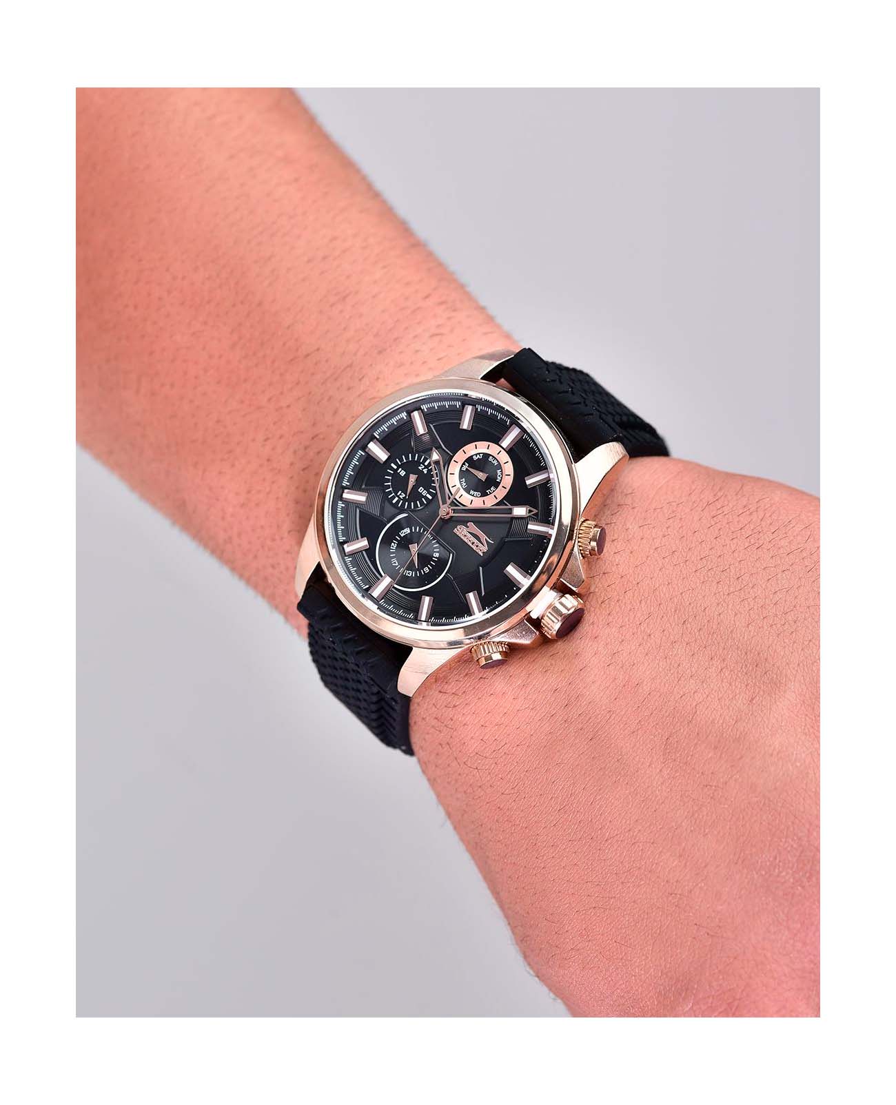 Мужские наручные часы Slazenger SL.09.2088.2.02 сочетают в себе современный дизайн и практичность. Модель обладает круглым корпусом диаметром 46 мм, изготовленным из суперметалла с IP-покрытиемIP-покрытиеМетод ионного напыления. Демонстрирует повышенную устойчивость к истиранию, окислению и химическим веществам. Под воздействием высокого давления и температуры около 1500°C молекулы металла надёжно соединяются с частицами корпуса часов., что обеспечивает высокую устойчивость к внешним воздействиям. Браслет выполнен из полимера (пластика и силикона), гарантирующего комфортное ношение благодаря своей легкости и гибкости. Циферблат оснащен малыми циферблатами для отображения даты, дня недели и текущего времени в 24-часовом формате второй часовой поясВторой часовой поясФункция, позволяющая отображать время двух часовых поясов одновременно., делая модель удобной для путешествий и повседневного использования. Для защиты используется минеральное стекло минеральное стеклоМинеральное стеклоМинеральное стекло представляет собой искусственно выращенный минерал кварца. Такое стекло отличается особой устойчивостью к повреждениям и царапинам. Уступает по некоторым качествам сапфировому стеклу., обеспечивающее прочную защиту от царапин. Часы работают на кварцевом механизме, что гарантирует точное время без необходимости подзаводки. Уровень водонепроницаемости составляет 5 атмосфер (50 метров), что позволяет использовать их при мытье рук или хождении под мелким дождем. Вес часов составляет всего 84 грамма, что добавляет комфорта при ношении. Модель представлена в мужской коллекции и является отличным выбором для тех, кто ценит функциональность и стильный внешний вид.