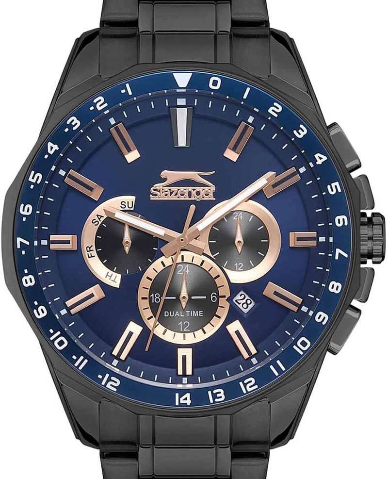 Эксклюзивные мужские наручные часы Slazenger SL.09.2112.2.03 - воплощение стиля и инноваций. Корпус из суперпрочного металла с черным IP-покрытиемIP-покрытиеМетод ионного напыления. Демонстрирует повышенную устойчивость к истиранию, окислению и химическим веществам. Под воздействием высокого давления и температуры около 1500°C молекулы металла надёжно соединяются с частицами корпуса часов. и элегантным круглым дизайном и фирменным логотипом. Многофункциональный синий циферблат с метками в виде штрихов выполнен по технологии Sunray (солнечные лучи) и украшен логотипом бренда. Часы оснащены двойным форматом времени (12 и 24 часа), вторым часовым поясом и удобным окошком даты. Отдельные циферблаты предоставляют расширенную информацию. Неподвижный безельБезельВнешний ободок, закрепляющий стекло. В спортивных часах так называется поворотное кольцо с делениями на циферблате, выполняет роль таймера – замеряет отрезки времени на шкале. Неподвижный безель – элемент декора. Однонаправленно вращающийся безель на дайверских часах позволяет фиксировать моменты погружения и выныривания на поверхность. из суперметалла с синим IP-покрытиемIP-покрытиеМетод ионного напыления. Демонстрирует повышенную устойчивость к истиранию, окислению и химическим веществам. Под воздействием высокого давления и температуры около 1500°C молекулы металла надёжно соединяются с частицами корпуса часов.. Рифленая заводная головка с защитой и надежный браслет с черным IP-покрытиемIP-покрытиеМетод ионного напыления. Демонстрирует повышенную устойчивость к истиранию, окислению и химическим веществам. Под воздействием высокого давления и температуры около 1500°C молекулы металла надёжно соединяются с частицами корпуса часов. и раскладной застёжкойРаскладная застёжкаТакой тип застёжки используется только на браслетах из металла. Она никогда не раскрывается полностью, происходит разделение на 2 и более частей. Раскладывающая застёжка снизит вероятность потери часов к минимуму. дополняют дизайн. Люминесцентное покрытиеЛюминесцентное покрытиеПозволяет считывать показания времени в темноте. Производители наносят на стрелки, часовые индексы, безель или поверхность циферблата светонакопительный состав, дающий холодное свечение. на стрелках и метках обеспечивает отличную видимость в темноте. Минеральное стеклоМинеральное стеклоМинеральное стекло представляет собой искусственно выращенный минерал кварца. Такое стекло отличается особой устойчивостью к повреждениям и царапинам. Уступает по некоторым качествам сапфировому стеклу. защищает циферблат от внешних воздействий. Эти часы - идеальный выбор для ценителей качества и индивидуальности, подчеркивающий статус и безупречный вкус владельца.