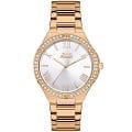 Женские часы Slazenger SL.09.2141.3.02 - это изысканный аксессуар, сочетающий в себе элегантность и функциональность. Модель оснащена надежным кварцевым механизмом и обладает водозащитой 3 АТМ, что позволяет не беспокоиться о случайных брызгах. Корпус часов диаметром 35 мм и толщиной 9 мм выполнен из прочного суперметалла с золотистым IP-покрытиемIP-покрытиеМетод ионного напыления. Демонстрирует повышенную устойчивость к истиранию, окислению и химическим веществам. Под воздействием высокого давления и температуры около 1500°C молекулы металла надёжно соединяются с частицами корпуса часов., а циферблат защищен минеральным стекломМинеральное стеклоМинеральное стекло представляет собой искусственно выращенный минерал кварца. Такое стекло отличается особой устойчивостью к повреждениям и царапинам. Уступает по некоторым качествам сапфировому стеклу.. БезельБезельВнешний ободок, закрепляющий стекло. В спортивных часах так называется поворотное кольцо с делениями на циферблате, выполняет роль таймера – замеряет отрезки времени на шкале. Неподвижный безель – элемент декора. Однонаправленно вращающийся безель на дайверских часах позволяет фиксировать моменты погружения и выныривания на поверхность. инкрустирован фианитами. Браслет, также изготовленный из суперметалла с IP-покрытиемIP-покрытиеМетод ионного напыления. Демонстрирует повышенную устойчивость к истиранию, окислению и химическим веществам. Под воздействием высокого давления и температуры около 1500°C молекулы металла надёжно соединяются с частицами корпуса часов., имеет раскладную застёжкуРаскладная застёжкаТакой тип застёжки используется только на браслетах из металла. Она никогда не раскрывается полностью, происходит разделение на 2 и более частей. Раскладывающая застёжка снизит вероятность потери часов к минимуму., что подчеркивает современный стиль и позволяет легко снимать часы. Особую привлекательность часам придают декоративные элементы в виде фианитов. Весом всего 90 грамм, эти часы станут легким и стильным дополнением к любому образу.