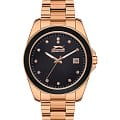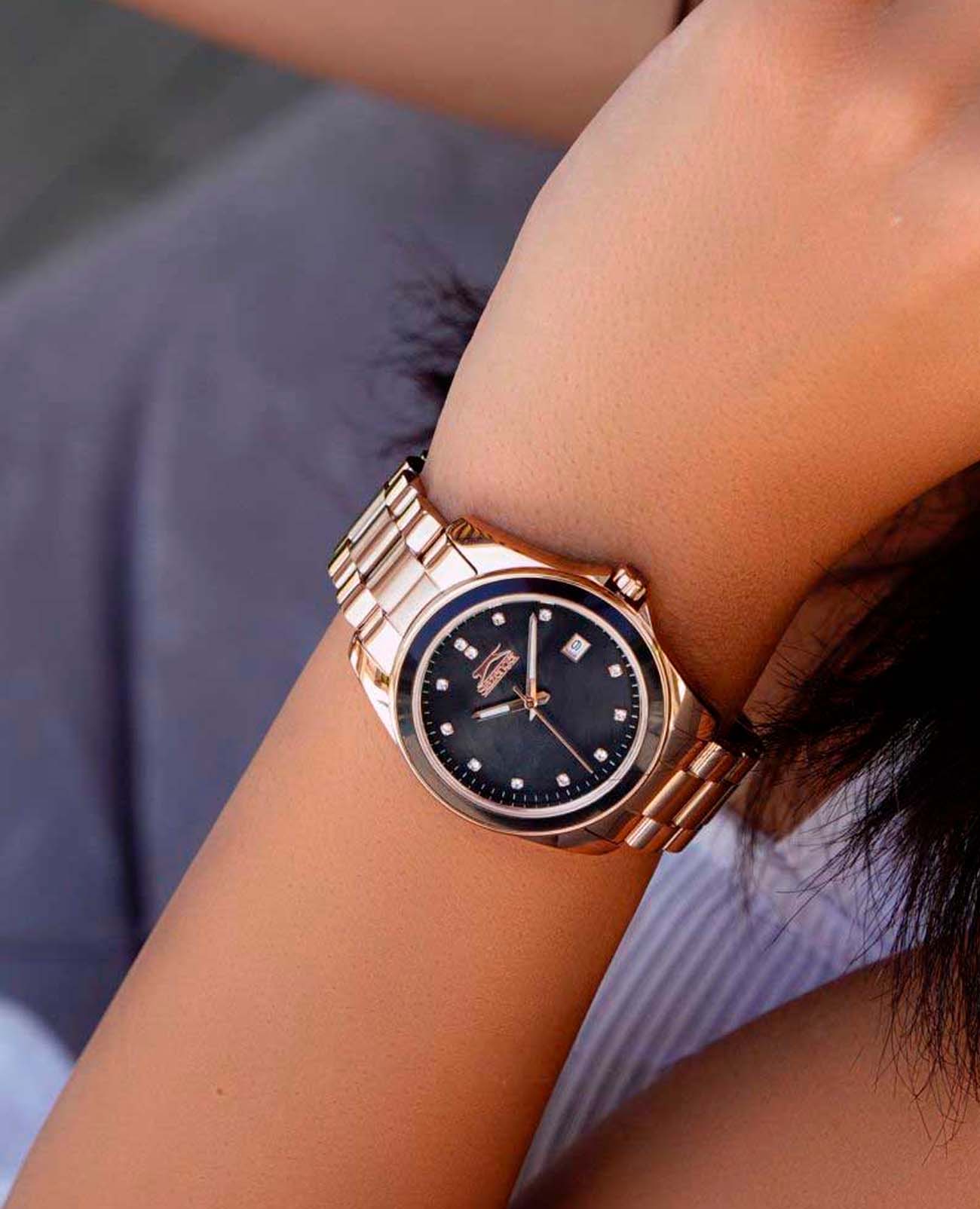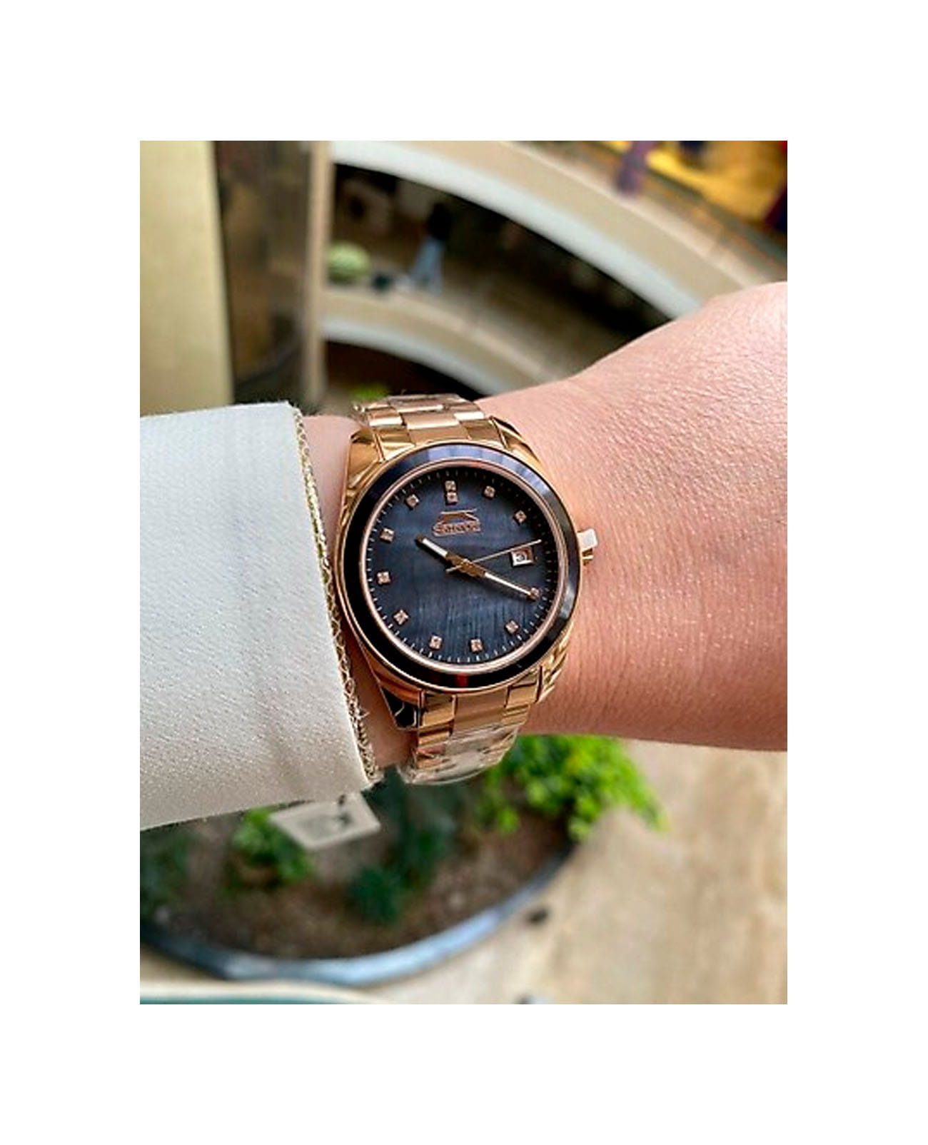 Женские наручные часы Slazenger SL.09.2142.3.04 сочетают в себе элегантный дизайн и надежность современных технологий. Модель обладает корпусом и браслетом из суперметалла с IP-покрытиемIP-покрытиеМетод ионного напыления. Демонстрирует повышенную устойчивость к истиранию, окислению и химическим веществам. Под воздействием высокого давления и температуры около 1500°C молекулы металла надёжно соединяются с частицами корпуса часов., что обеспечивает высокую устойчивость к внешним воздействиям. Браслет на раскладной застёжкеРаскладная застёжкаТакой тип застёжки используется только на браслетах из металла. Она никогда не раскрывается полностью, происходит разделение на 2 и более частей. Раскладывающая застёжка снизит вероятность потери часов к минимуму., гарантирует комфортное ношение и стильный внешний вид. Циферблат черного цвета декорирован стрелками и метками в виде кристаллов, которые обеспечивают читаемость времени даже в условиях недостаточной освещенности. Для защиты используется минеральное стеклоМинеральное стеклоМинеральное стекло представляет собой искусственно выращенный минерал кварца. Такое стекло отличается особой устойчивостью к повреждениям и царапинам. Уступает по некоторым качествам сапфировому стеклу., обеспечивающее прочную защиту от царапин. Часы работают на кварцевом механизме, питаемом от батареи, что гарантирует точное время без необходимости подзаводки. Модель также оснащена функцией отображения даты, делая ее практичной для повседневного использования. Водонепроницаемость часов достигает 3 атмосфер (30M), что позволяет использовать их при мытье рук или хождении под мелким дождем, однако не рекомендуется для плавания или других водных видов спорта.