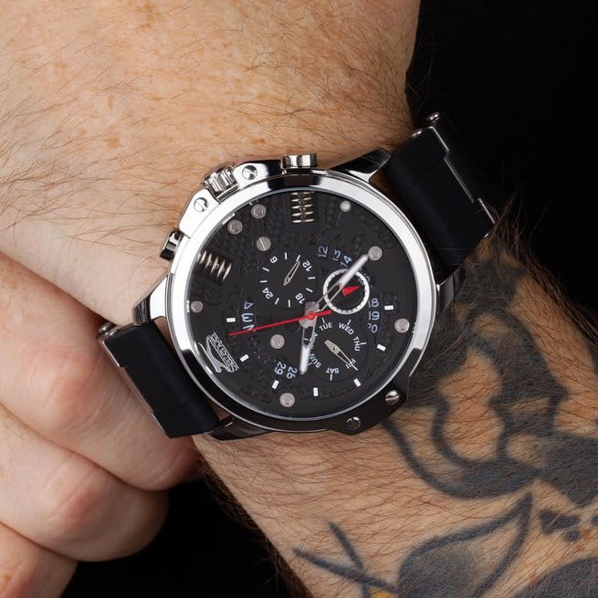 Часы Slazenger SL.09.2212.2.01 представляют собой стильный и функциональный аксессуар, созданный для современных мужчин, ценящих качество и надежность. Они оснащены кварцевым механизмом, который обеспечивает точность хода и минимальную необходимость в обслуживании. Люминесцентное покрытиеЛюминесцентное покрытиеПозволяет считывать показания времени в темноте. Производители наносят на стрелки, часовые индексы, безель или поверхность циферблата светонакопительный состав, дающий холодное свечение. на стрелках и метках обеспечивает отличную видимость в темноте. Благодаря водозащите уровня WR 50 (5 ATM), эти часы отлично справляются с воздействием влаги, что делает их подходящими для повседневного ношения и активного образа жизни. Минеральное стеклоМинеральное стеклоМинеральное стекло представляет собой искусственно выращенный минерал кварца. Такое стекло отличается особой устойчивостью к повреждениям и царапинам. Уступает по некоторым качествам сапфировому стеклу. защищает циферблат от царапин и повреждений, гарантируя долгий срок службы. Корпус часов диаметром 47 мм и толщиной 13 мм выполнен из прочного суперметалла, что придаёт им стильный и современный вид. Силиконовый черный браслет, дополненный элементами из суперметалла, обеспечивает комфорт при носке и надёжно фиксирует часы на запястье, а его размеры (22-20 мм) подходят для большинства мужчин. Часы оснащены рядом полезных функций, таких как индикация даты, дня недели и 24-часовой указатель времени, что делает их не только стильным, но и практичным аксессуаром. Вес модели составляет 110 г, что делает их лёгкими и удобными для ежедневного ношения.