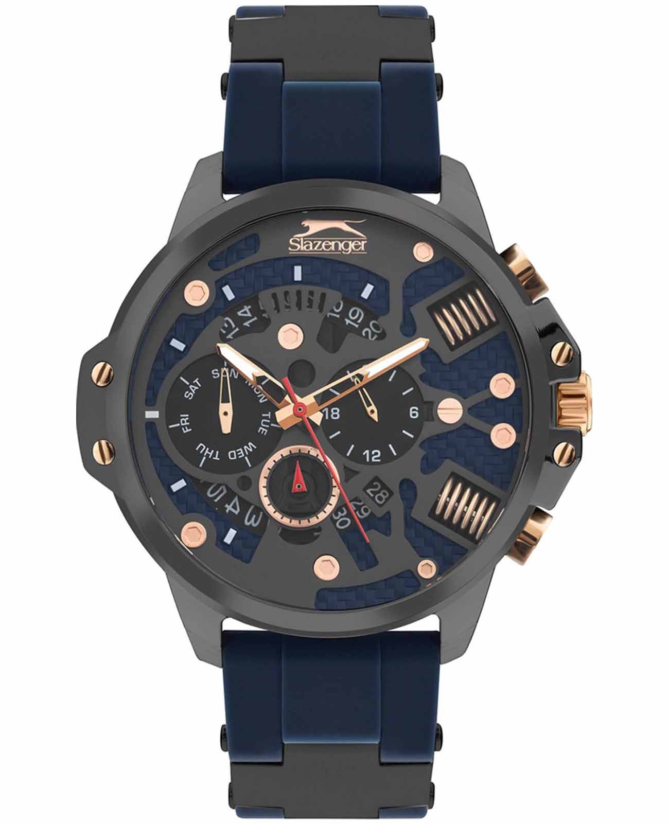 Часы Slazenger SL.09.2212.2.02 представляют собой стильный и функциональный аксессуар, созданный для современных мужчин, ценящих качество и надежность. Они оснащены кварцевым механизмом, который обеспечивает точность хода и минимальную необходимость в обслуживании. Люминесцентное покрытиеЛюминесцентное покрытиеПозволяет считывать показания времени в темноте. Производители наносят на стрелки, часовые индексы, безель или поверхность циферблата светонакопительный состав, дающий холодное свечение. на стрелках и метках обеспечивает отличную видимость в темноте. Благодаря водозащите уровня WR 50 (5 ATM), эти часы отлично справляются с воздействием влаги, что делает их подходящими для повседневного ношения и активного образа жизни. Минеральное стеклоМинеральное стеклоМинеральное стекло представляет собой искусственно выращенный минерал кварца. Такое стекло отличается особой устойчивостью к повреждениям и царапинам. Уступает по некоторым качествам сапфировому стеклу. защищает циферблат от царапин и повреждений, гарантируя долгий срок службы. Корпус часов диаметром 47 мм и толщиной 13 мм выполнен из прочного суперметалла с черным IP-покрытиемIP-покрытиеМетод ионного напыления. Демонстрирует повышенную устойчивость к истиранию, окислению и химическим веществам. Под воздействием высокого давления и температуры около 1500°C молекулы металла надёжно соединяются с частицами корпуса часов., что придаёт им стильный и современный вид. Силиконовый синий браслет, дополненный элементами из суперметалла с черным IP-покрытиемIP-покрытиеМетод ионного напыления. Демонстрирует повышенную устойчивость к истиранию, окислению и химическим веществам. Под воздействием высокого давления и температуры около 1500°C молекулы металла надёжно соединяются с частицами корпуса часов., обеспечивает комфорт при носке и надёжно фиксирует часы на запястье, а его размеры (22-20 мм) подходят для большинства мужчин. Часы оснащены рядом полезных функций, таких как индикация даты, дня недели и 24-часовой указатель времени, что делает их не только стильным, но и практичным аксессуаром. Вес модели составляет 110 г, что делает их лёгкими и удобными для ежедневного ношения.