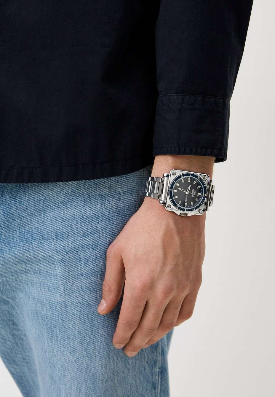 Часы Slazenger SL.09.2232.1.03 — это современная модель, сочетающая стиль и практичность. Корпус квадратной формы выполнен из прочного металла, а круглый синий циферблат придает дизайну особую выразительность. На вращающийся безельБезельВнешний ободок, закрепляющий стекло. В спортивных часах так называется поворотное кольцо с делениями на циферблате, выполняет роль таймера – замеряет отрезки времени на шкале. Неподвижный безель – элемент декора. Однонаправленно вращающийся безель на дайверских часах позволяет фиксировать моменты погружения и выныривания на поверхность. нанесено синее IP-покрытиеIP-покрытиеМетод ионного напыления. Демонстрирует повышенную устойчивость к истиранию, окислению и химическим веществам. Под воздействием высокого давления и температуры около 1500°C молекулы металла надёжно соединяются с частицами корпуса часов.. Серебристый металлический браслет снабжен надежной раскладной застёжкойРаскладная застёжкаТакой тип застёжки используется только на браслетах из металла. Она никогда не раскрывается полностью, происходит разделение на 2 и более частей. Раскладывающая застёжка снизит вероятность потери часов к минимуму., обеспечивающей удобство при повседневном ношении. Модель оснащена кварцевым механизмом, минеральное стеклоМинеральное стеклоМинеральное стекло представляет собой искусственно выращенный минерал кварца. Такое стекло отличается особой устойчивостью к повреждениям и царапинам. Уступает по некоторым качествам сапфировому стеклу., защищающим от случайных повреждений, и водозащитой уровня WR 50, позволяющей не бояться контакта с водой в повседневных ситуациях. На циферблате расположены окошки даты и дня недели. Для удобства использования в темное время суток предусмотрено люминесцентное покрытиеЛюминесцентное покрытиеПозволяет считывать показания времени в темноте. Производители наносят на стрелки, часовые индексы, безель или поверхность циферблата светонакопительный состав, дающий холодное свечение. стрелок. Заводная головка дополнительно защищена от случайных нажатий. Габариты корпуса составляют 43 на 43 мм, толщина — 11 мм.