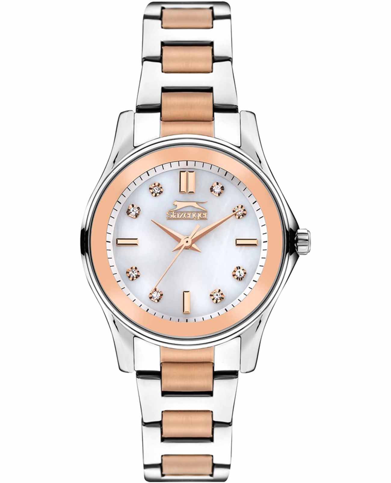 Женские наручные часы Slazenger SL.09.2235.3.02 сочетают в себе классический дизайн и надежность современных технологий. Модель обладает круглым корпусом диаметром 32 мм, изготовленным из прочного металла, что обеспечивает высокую устойчивость к внешним воздействиям. Индексы украшены фианитами. Браслет выполнен из металла с частичным розово-золотистым IP-покрытиемIP-покрытиеМетод ионного напыления. Демонстрирует повышенную устойчивость к истиранию, окислению и химическим веществам. Под воздействием высокого давления и температуры около 1500°C молекулы металла надёжно соединяются с частицами корпуса часов. и с раскладной застёжкойРаскладная застёжкаТакой тип застёжки используется только на браслетах из металла. Она никогда не раскрывается полностью, происходит разделение на 2 и более частей. Раскладывающая застёжка снизит вероятность потери часов к минимуму., гарантирующей комфортное ношение и безопасность. Циферблат перламутрового белого цвета декорирован золотистыми стрелками и индексами. Для защиты используется минеральное стеклоМинеральное стеклоМинеральное стекло представляет собой искусственно выращенный минерал кварца. Такое стекло отличается особой устойчивостью к повреждениям и царапинам. Уступает по некоторым качествам сапфировому стеклу., обеспечивающее прочную защиту от царапин. Часы работают на кварцевом механизме, что гарантирует точное время без необходимости подзаводки. Водонепроницаемость часов достигает 3 атмосфер, что позволяет использовать их при мытье рук или хождении под мелким дождем, однако не рекомендуется для плавания или других водных видов спорта. Вес модели составляет 72 грамма.