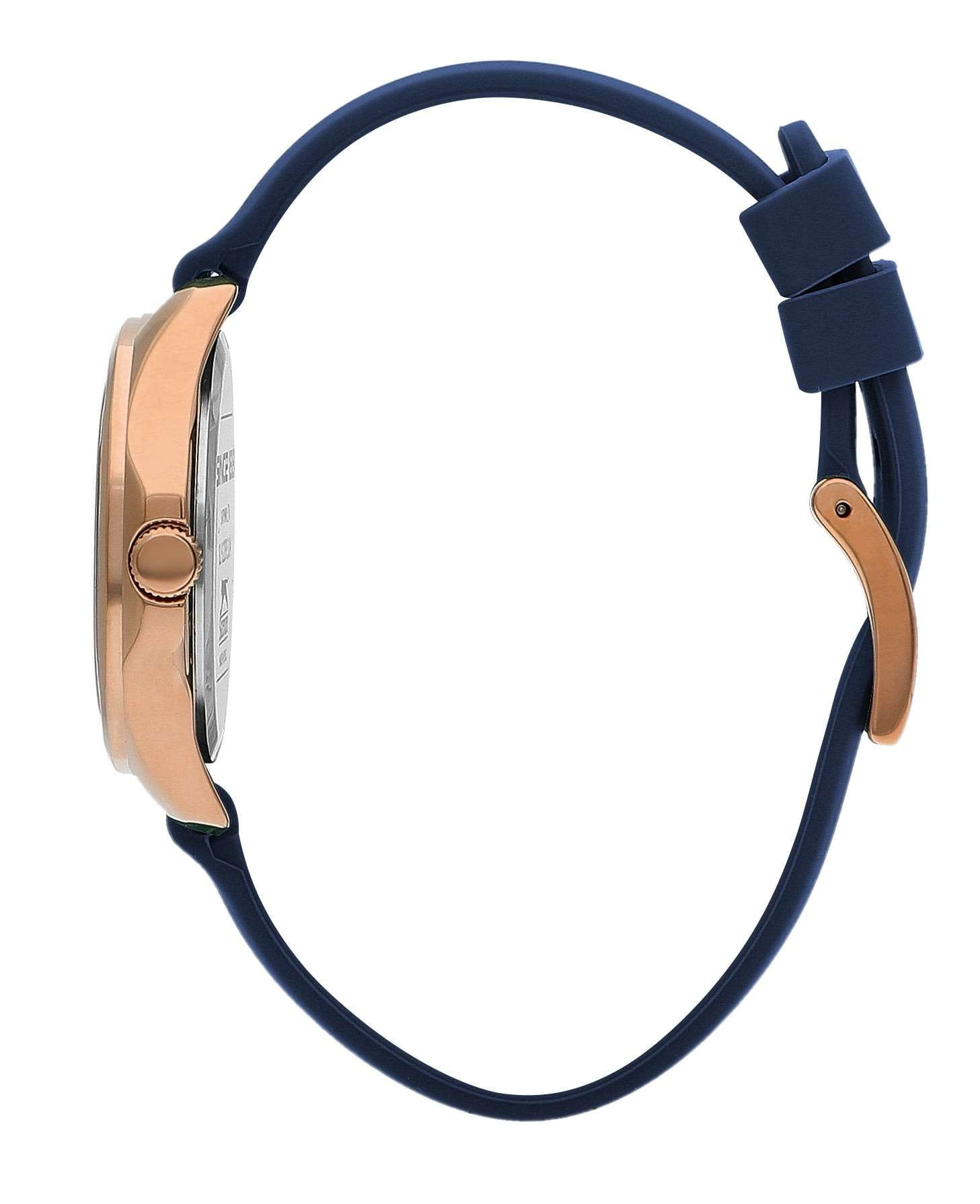 Часы Slazenger SL.09.2239.3.02 – это изысканный аксессуар, который станет стильным акцентом любого образа. Модель оснащена надежным кварцевым механизмом. Корпус из прочного металла с розово-золотистым IP-покрытиемIP-покрытиеМетод ионного напыления. Демонстрирует повышенную устойчивость к истиранию, окислению и химическим веществам. Под воздействием высокого давления и температуры около 1500°C молекулы металла надёжно соединяются с частицами корпуса часов. размером 34х34 мм украшен россыпью сверкающих фианитов по безелюБезельВнешний ободок, закрепляющий стекло. В спортивных часах так называется поворотное кольцо с делениями на циферблате, выполняет роль таймера – замеряет отрезки времени на шкале. Неподвижный безель – элемент декора. Однонаправленно вращающийся безель на дайверских часах позволяет фиксировать моменты погружения и выныривания на поверхность., что придает часам особое сияние и элегантность. Синий циферблат с логотипом бренда защищен стойким к царапинам минеральным стекломМинеральное стеклоМинеральное стекло представляет собой искусственно выращенный минерал кварца. Такое стекло отличается особой устойчивостью к повреждениям и царапинам. Уступает по некоторым качествам сапфировому стеклу.. Четкие часовые метки в виде лаконичных штрихов и крупная арабская цифра 12 обеспечивают удобство чтения времени. Заводная головка с рифлением дополнена защитой для повышения долговечности. Резиновый синий ремешок шириной 18 мм надежно фиксируется на запястье с помощью классической застежки. Для удобства использования в темное время суток предусмотрено люминесцентное покрытиеЛюминесцентное покрытиеПозволяет считывать показания времени в темноте. Производители наносят на стрелки, часовые индексы, безель или поверхность циферблата светонакопительный состав, дающий холодное свечение. стрелок. Водозащита 30WR позволяет не беспокоиться о случайных брызгах. Вес изделия составляет 43 грамма, что делает часы комфортными для ежедневного ношения. Эти часы идеально подойдут для тех, кто ценит гармонию стиля, качества и функциональности.