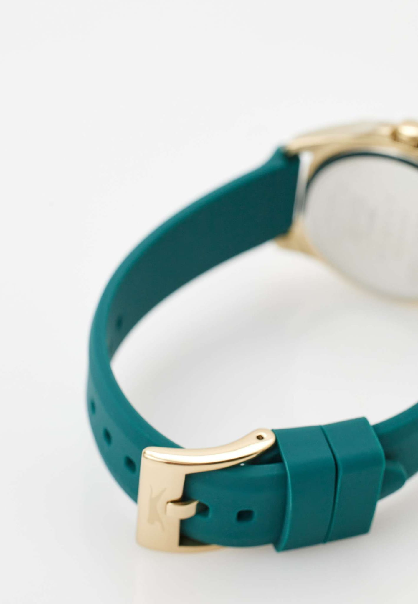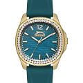 Часы Slazenger SL.09.2239.3.04 – это изысканный аксессуар, который станет стильным акцентом любого образа. Модель оснащена надежным кварцевым механизмом. Корпус из прочного металла с золотистым  IP-покрытиемIP-покрытиеМетод ионного напыления. Демонстрирует повышенную устойчивость к истиранию, окислению и химическим веществам. Под воздействием высокого давления и температуры около 1500°C молекулы металла надёжно соединяются с частицами корпуса часов. размером 34х34 мм украшен россыпью сверкающих фианитов по безелюБезельВнешний ободок, закрепляющий стекло. В спортивных часах так называется поворотное кольцо с делениями на циферблате, выполняет роль таймера – замеряет отрезки времени на шкале. Неподвижный безель – элемент декора. Однонаправленно вращающийся безель на дайверских часах позволяет фиксировать моменты погружения и выныривания на поверхность., что придает часам особое сияние и элегантность. Сине-зеленый циферблат с логотипом бренда защищен стойким к царапинам минеральным стекломМинеральное стеклоМинеральное стекло представляет собой искусственно выращенный минерал кварца. Такое стекло отличается особой устойчивостью к повреждениям и царапинам. Уступает по некоторым качествам сапфировому стеклу.. Четкие часовые метки в виде лаконичных штрихов и крупная арабская цифра 12 обеспечивают удобство чтения времени. Заводная головка с рифлением дополнена защитой для повышения долговечности. Резиновый сине-зеленый ремешок шириной 18 мм надежно фиксируется на запястье с помощью классической застежки. Для удобства использования в темное время суток предусмотрено люминесцентное покрытиеЛюминесцентное покрытиеПозволяет считывать показания времени в темноте. Производители наносят на стрелки, часовые индексы, безель или поверхность циферблата светонакопительный состав, дающий холодное свечение. стрелок. Водозащита 30WR позволяет не беспокоиться о случайных брызгах. Вес изделия составляет 43 грамма, что делает часы комфортными для ежедневного ношения. Эти часы идеально подойдут для тех, кто ценит гармонию стиля, качества и функциональности.